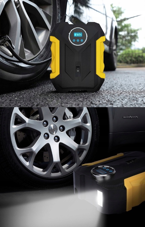 6. Poczekaj aż kompres napompuje koło do zadanego ciśnienia i sam zakończy pracę