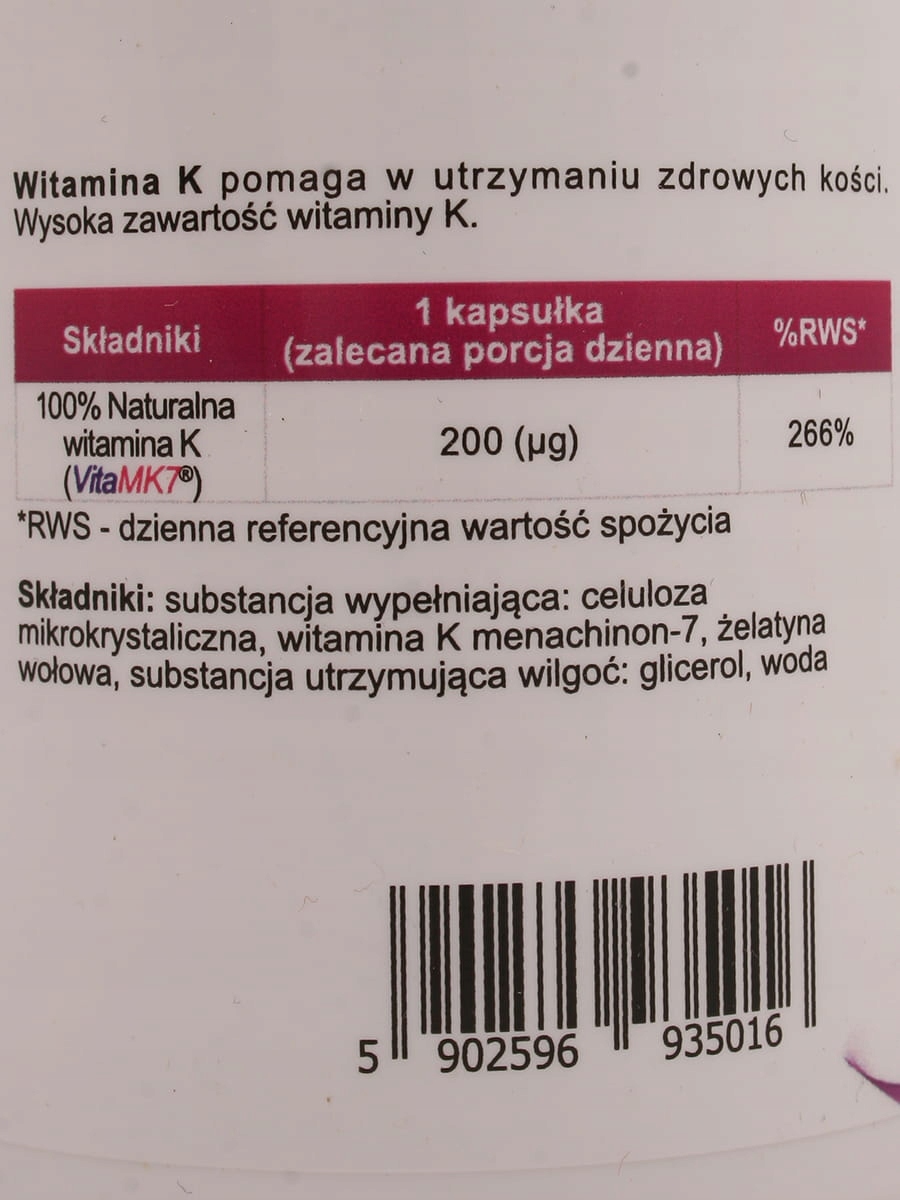 Код производителя Witamina K2 MK7 z natto Stawy Odporność