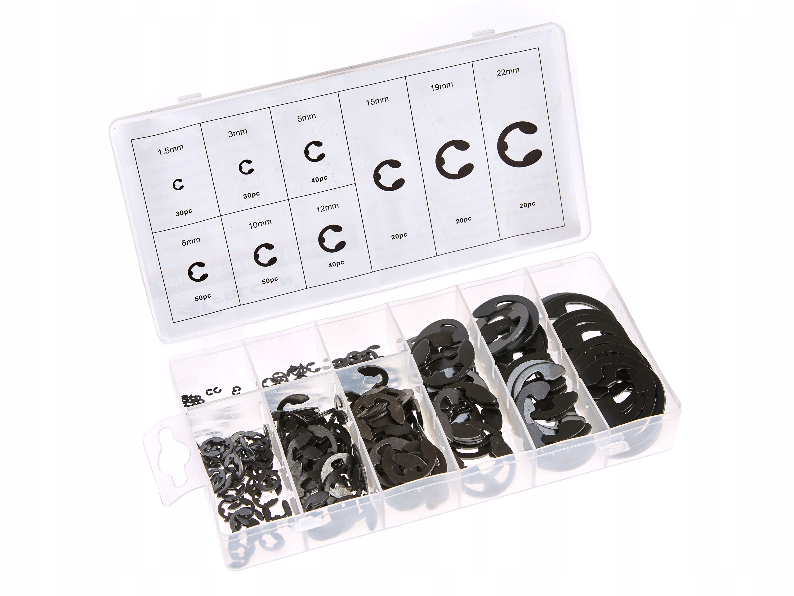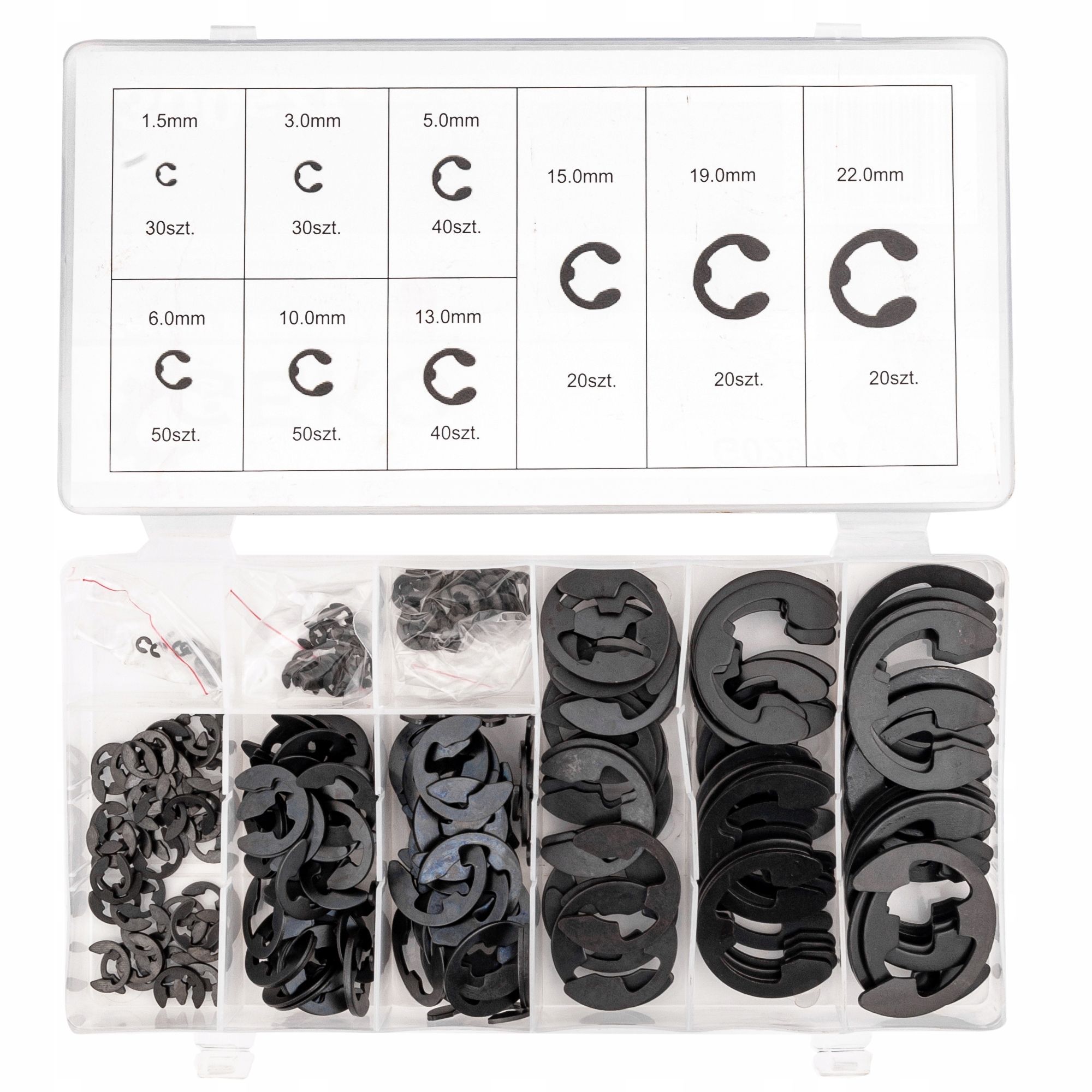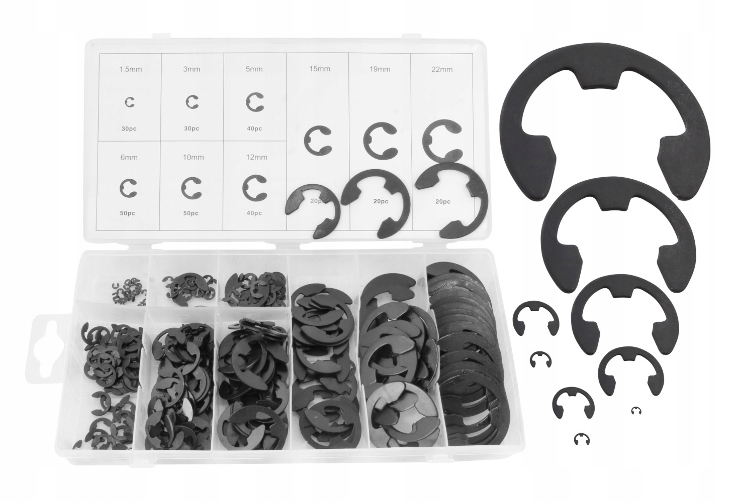 Zestaw przeznaczony do zabezpieczania wałków, osi i trzpieni przed przesuwaniem. Stosowany w mechanice pojazdowej, urządzeniach przemysłowych oraz maszynach. Odpowiedni do warsztatów, serwisów technicznych oraz prac montażowych. Może być wykorzystywany w naprawach sprzętu i konstrukcjach mechanicznych.