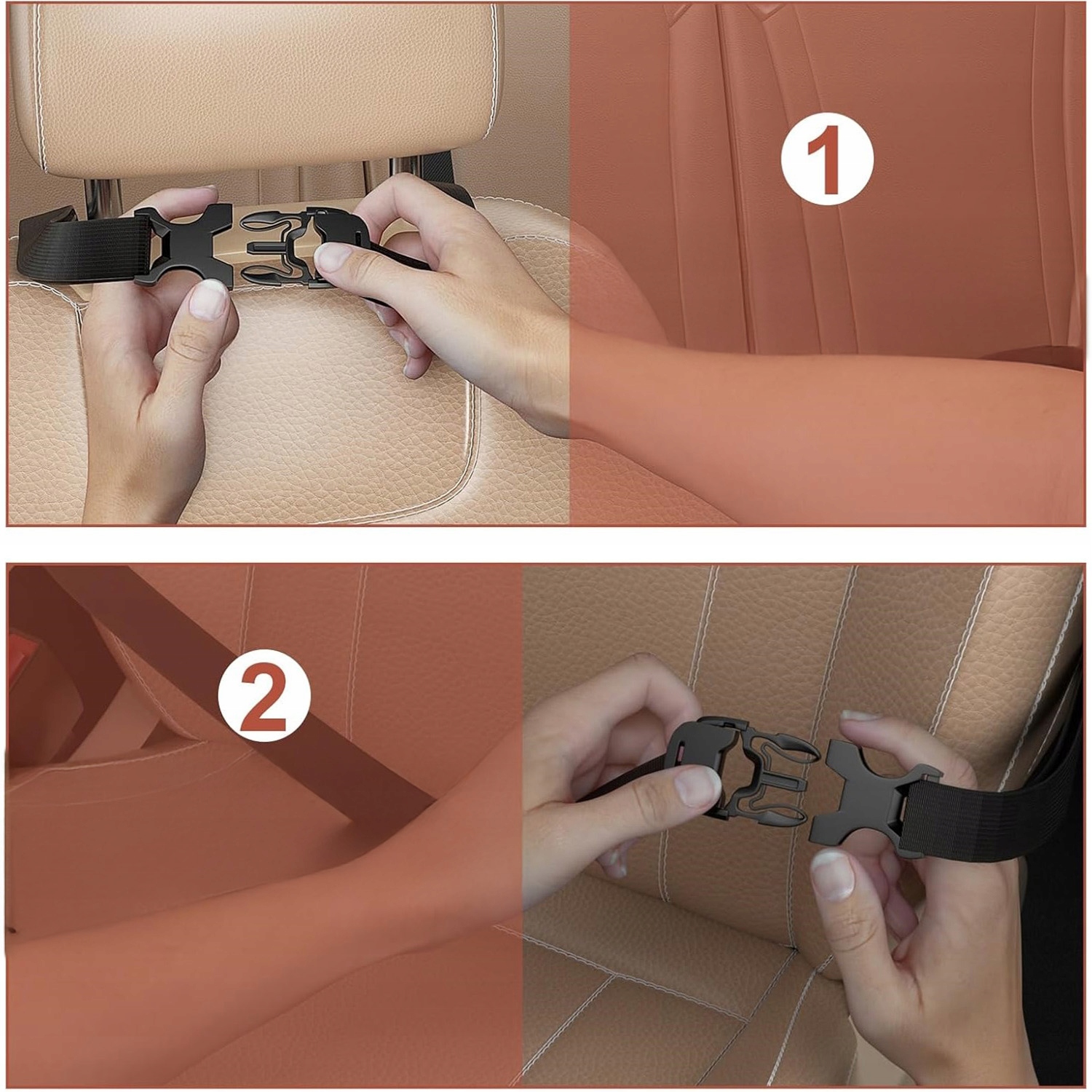 Szybko i bezpiecznie mocuje się do oparcia przedniego siedzenia za pomocą regulowanych pasków. Łatwy w montażu, solidny i trwały.