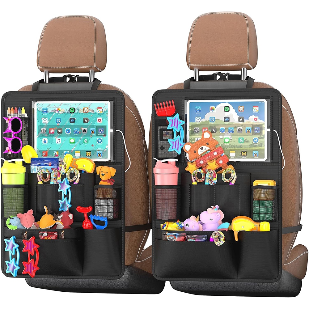 Liczne przegródki i kieszenie zapewniają wystarczającą ilość miejsca, aby schludnie uporządkować zabawki, przekąski i niezbędne rzeczy podróżne, oszczędzając miejsce w samochodzie.