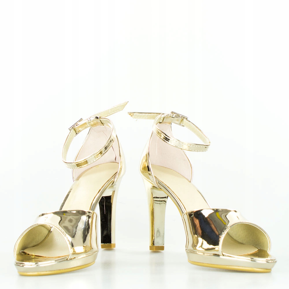 ZŁOTE SZPILKI SANDAŁY NA PODSUWCE LUSTRZANE