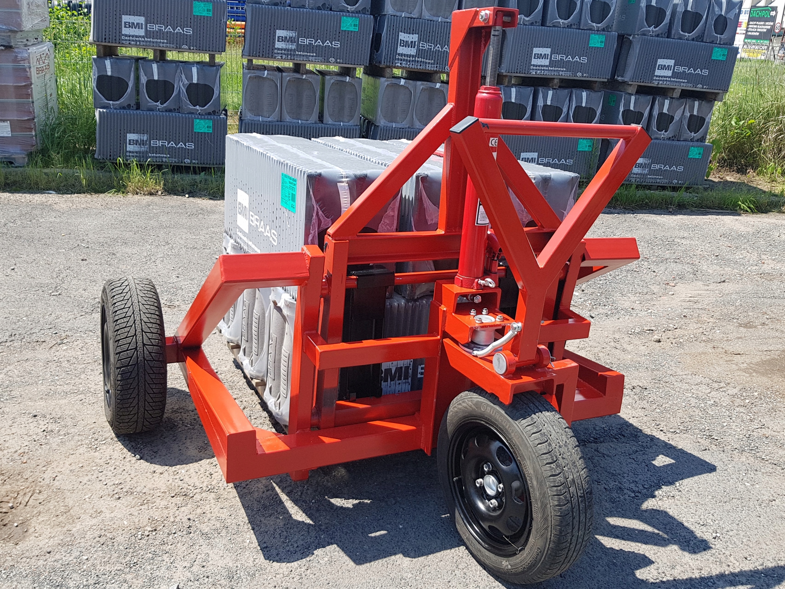 Wózek paletowy dzięki dużym kołom pozwala na przewożenie materiału po nierównej nawierzchni. Można go pchać jak i ciągnąć. Wózek posiada dwa duże koła po bokach oraz jedno koło z tyłu. Ładunek podnoszony jest za pomocą ręcznego siłownika hydraulicznego.