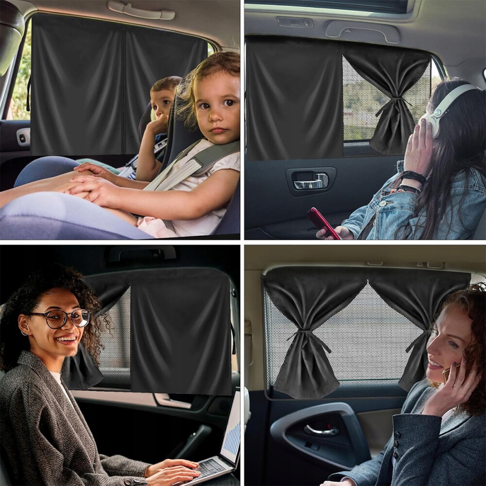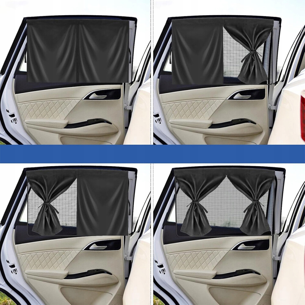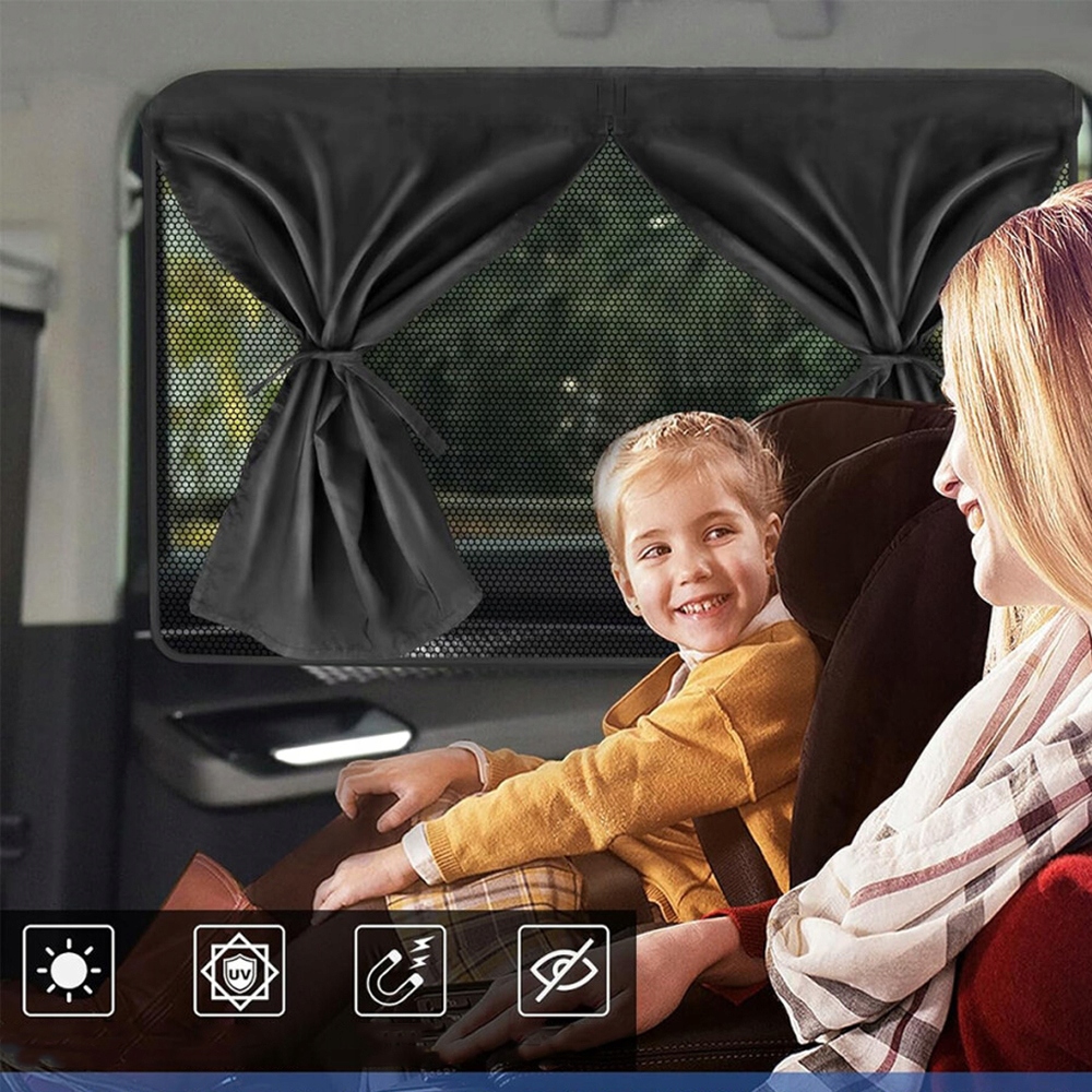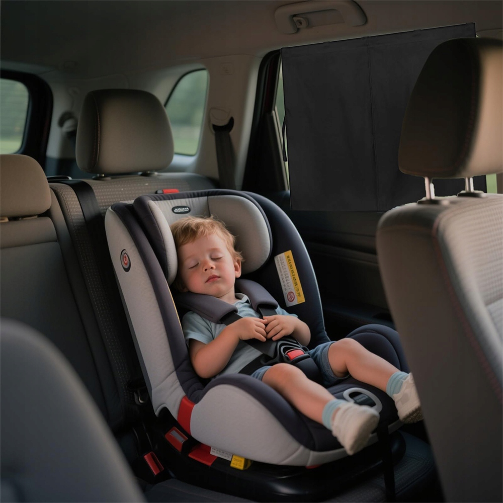 Nasza osłona przeciwsłoneczna na szybę samochodową składa się z dwóch warstw materiału:jedna to półprzezroczysta siateczka, a druga to nieprzezroczysta tkanina zacieniająca. W razie potrzeby możesz wybrać pełne lub częściowe zacienienie. Tylko do tylnych bocznych szyb podczas jazdy! Nie stosować na przednich szybach, które ograniczają widoczność kierowcy.