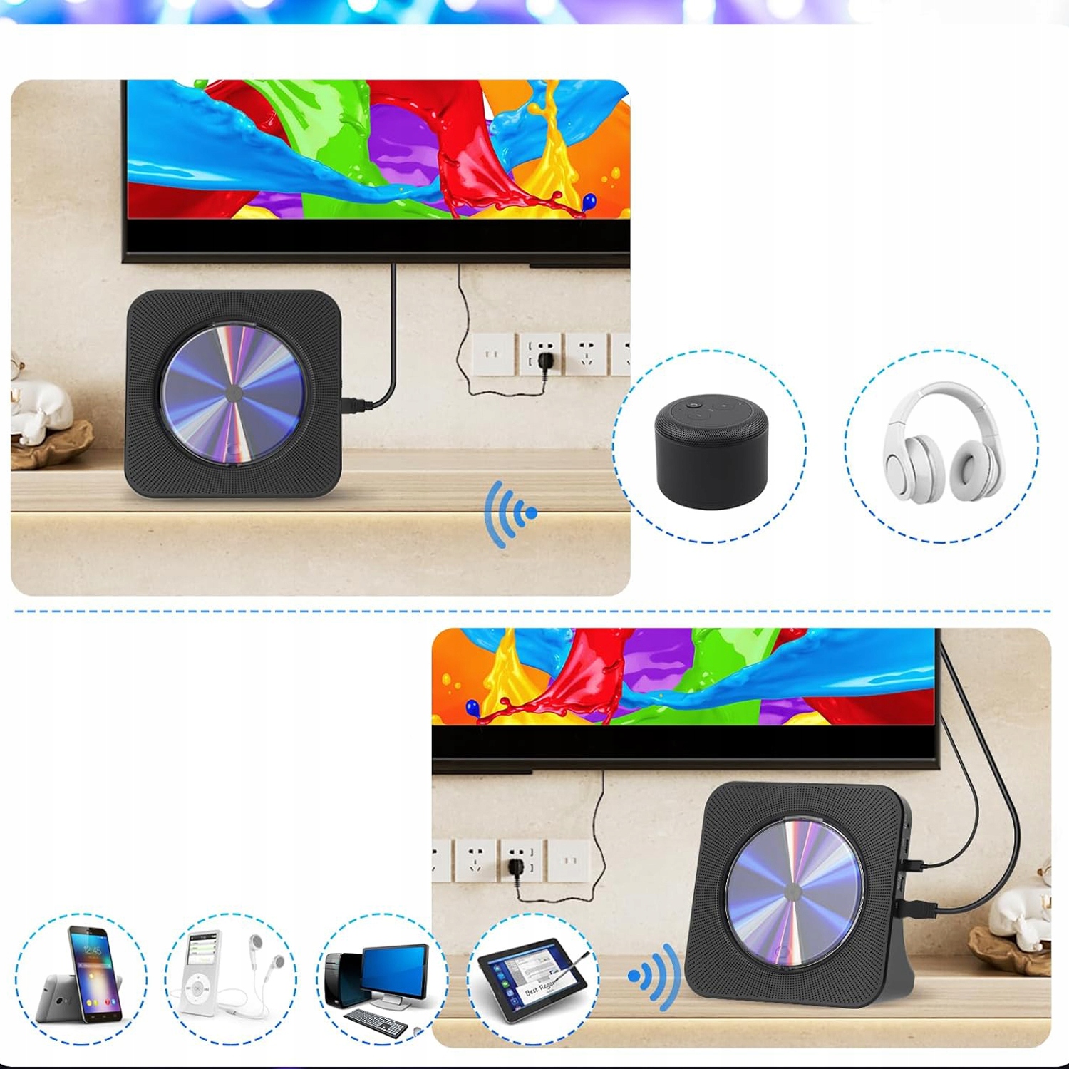 🎶 Wielofunkcyjny odtwarzacz DVD/CD 6 w 1 CD: