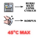W zmywarce, w temperaturze maksymalnie 45 °C, można myć wyłącznie rurki, tuleję środkową, końcówkę cybucha, cybuch, końcówkę ustnika, ustnik oraz wąż.