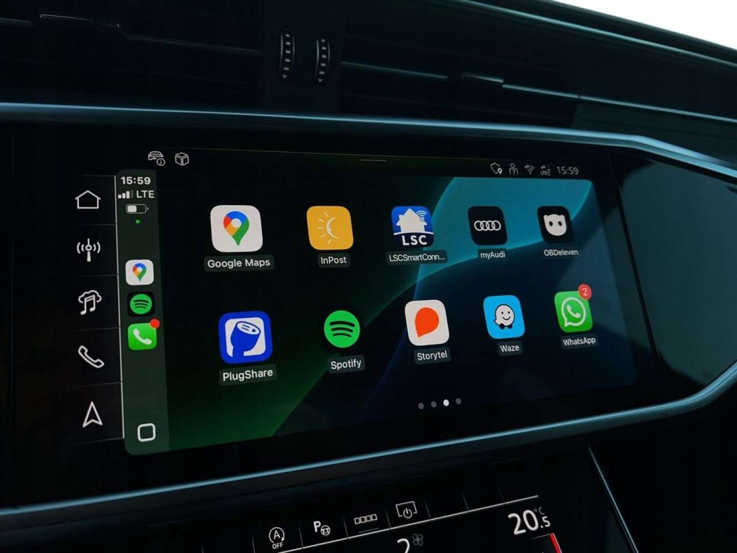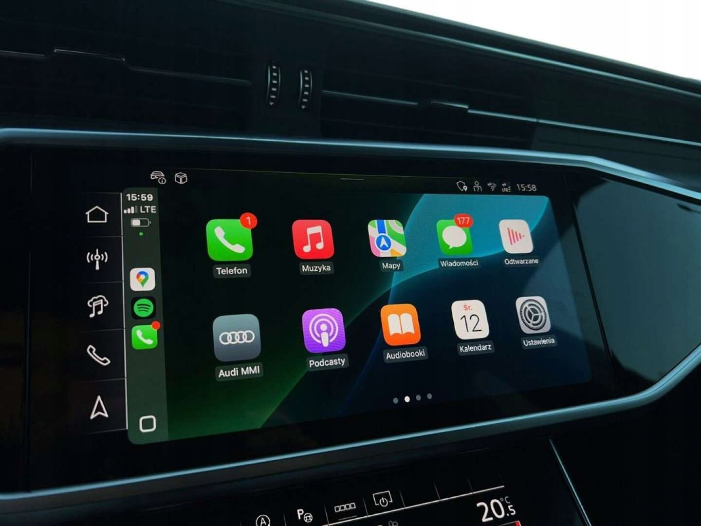 Audi smartphone interface - zrzut ekranu smartfona na wyświetlacz centralny za pomocą Apple CarPlay lub Android Auto