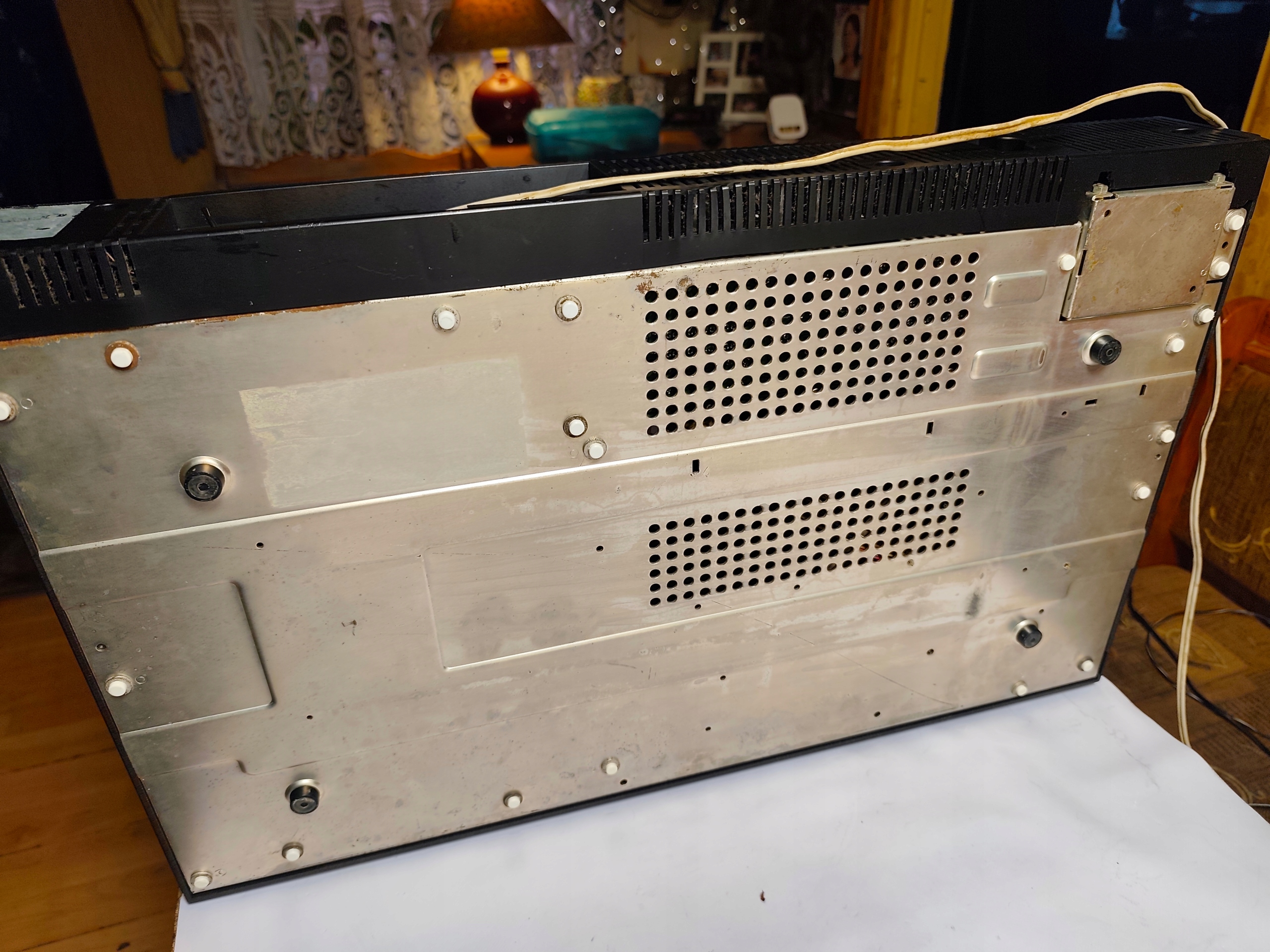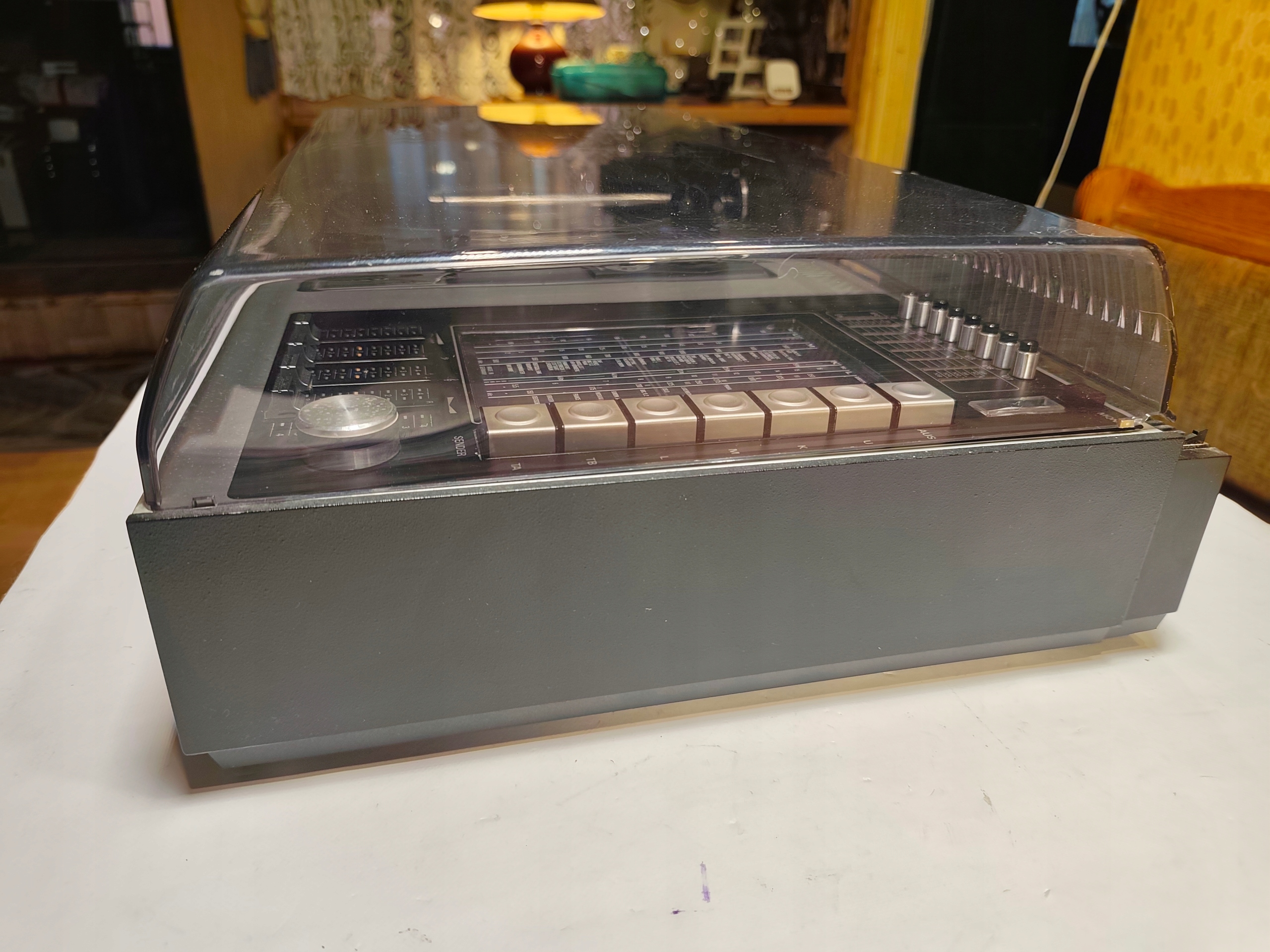 Stan techniczny sprawne, działa, gramofon działa dobrze, tylko po włączeniu przełącznika na (start) ramię z igłą nie przesuwa się nad samą płytę tylko trochę wcześniej, trzeba popchnąć palcem. Reszta automatyki działa dobrze. Igła w stanie dobrym. Radio odbiera stacje radiowe w stereo ale trochę szumi. Możliwe że trzeba lepszą antenę niż moja.