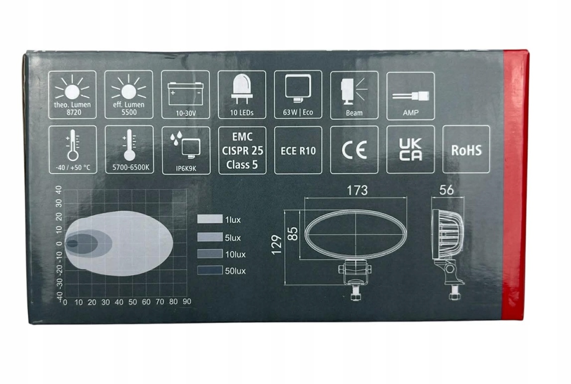Zmień noc w dzień dzięki profesjonalnemu reflektorowi roboczemu marki GRANIT. To potężne źródło światła o mocy 63W, zaprojektowane z myślą o najbardziej wymagających użytkownikach maszyn rolniczych i budowlanych. Dzięki strumieniowi świetlnemu o wartości teoretycznej aż 8720 lm, lampa zapewnia doskonałą widoczność na dużych dystansach.