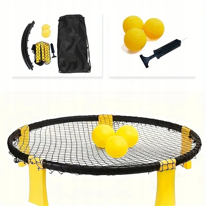 Spikeball to dynamiczna gra zręcznościowa, która łączy elementy siatkówki i gry zespołowej. Idealna na plażę, ogród, kemping, park, działkę lub do hali sportowej.