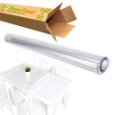 Полностью прозрачная, толстая. Твердый, но его можно свернуть в рулон. После она сама расширяется полностью.