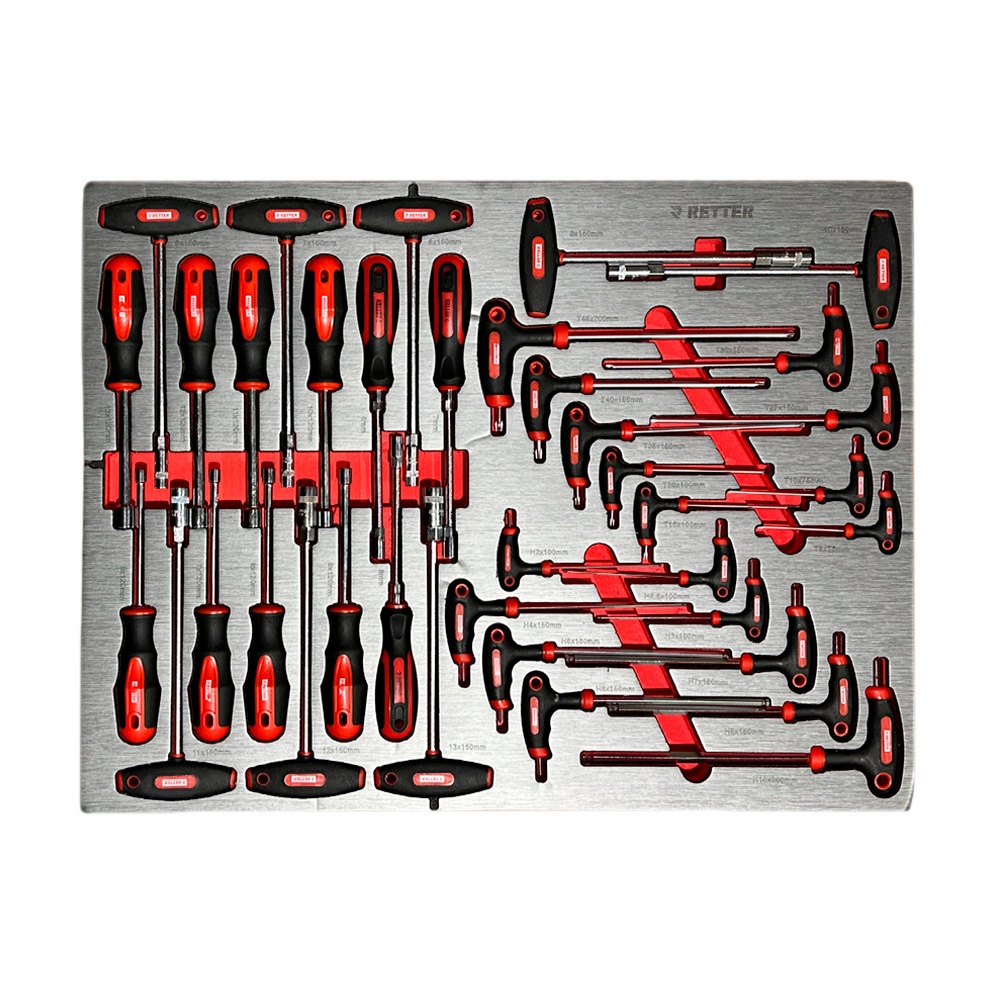 RETTER to producent profesjonalnego wyposażenia warsztatowego przeznaczonego do intensywnego użytku w serwisach, warsztatach oraz przemyśle. Narzędzia wykonane ze stali chromowo–wanadowej (CR-V) oraz solidna konstrukcja wózków z malowanej proszkowo stali zapewniają wysoką trwałość, odporność na obciążenia oraz długą żywotność w wymagających warunkach pracy.