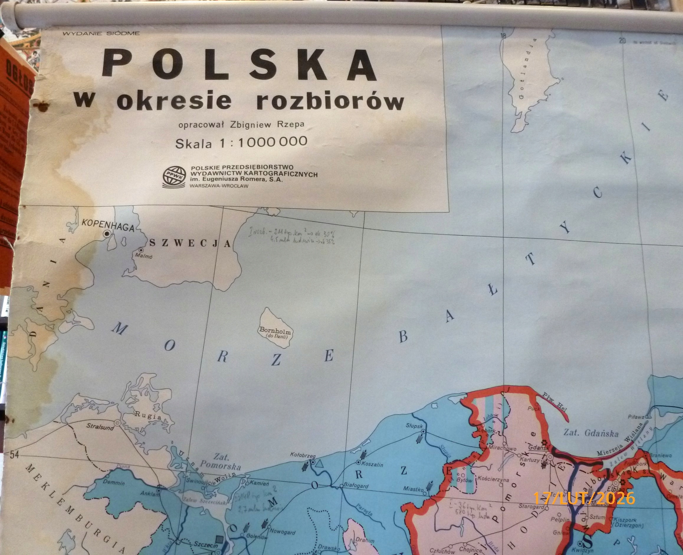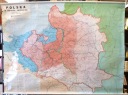 Wymiary: folia na płótnie, 170 x 120 cm, metalowe drążki, plastikowe końcówki, sznurki do zawieszania i związania mapy