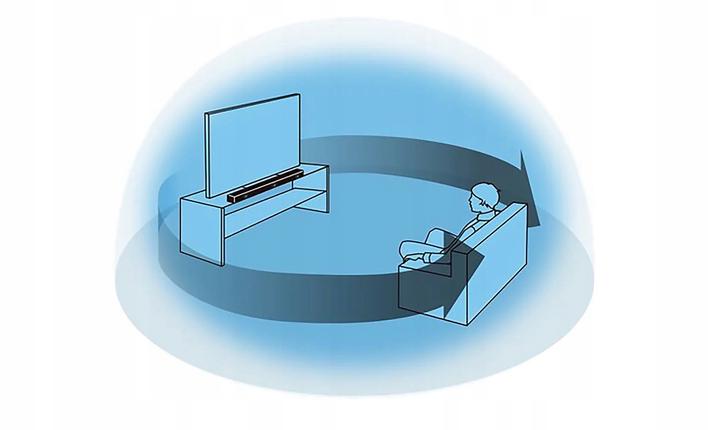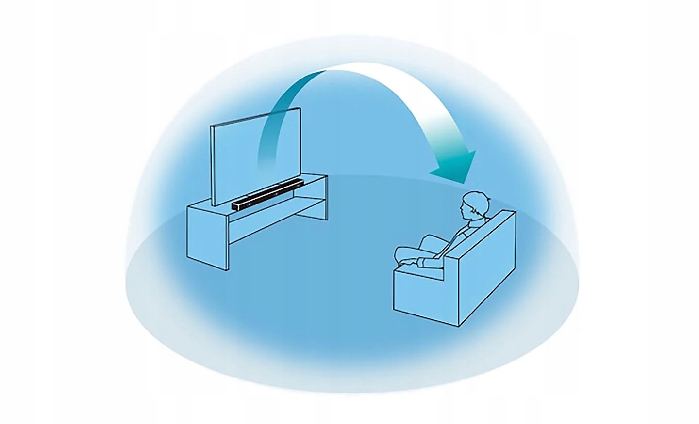 Firmowa technologia przetwarzania cyfrowego pola dźwiękowego rekonstruuje wirtualne, przestrzenne pole dźwiękowe z użyciem wyłącznie przednich głośników. Rezultat to bogaty, filmowy efekt przestrzenny bez dodatkowych urządzeń w salonie.