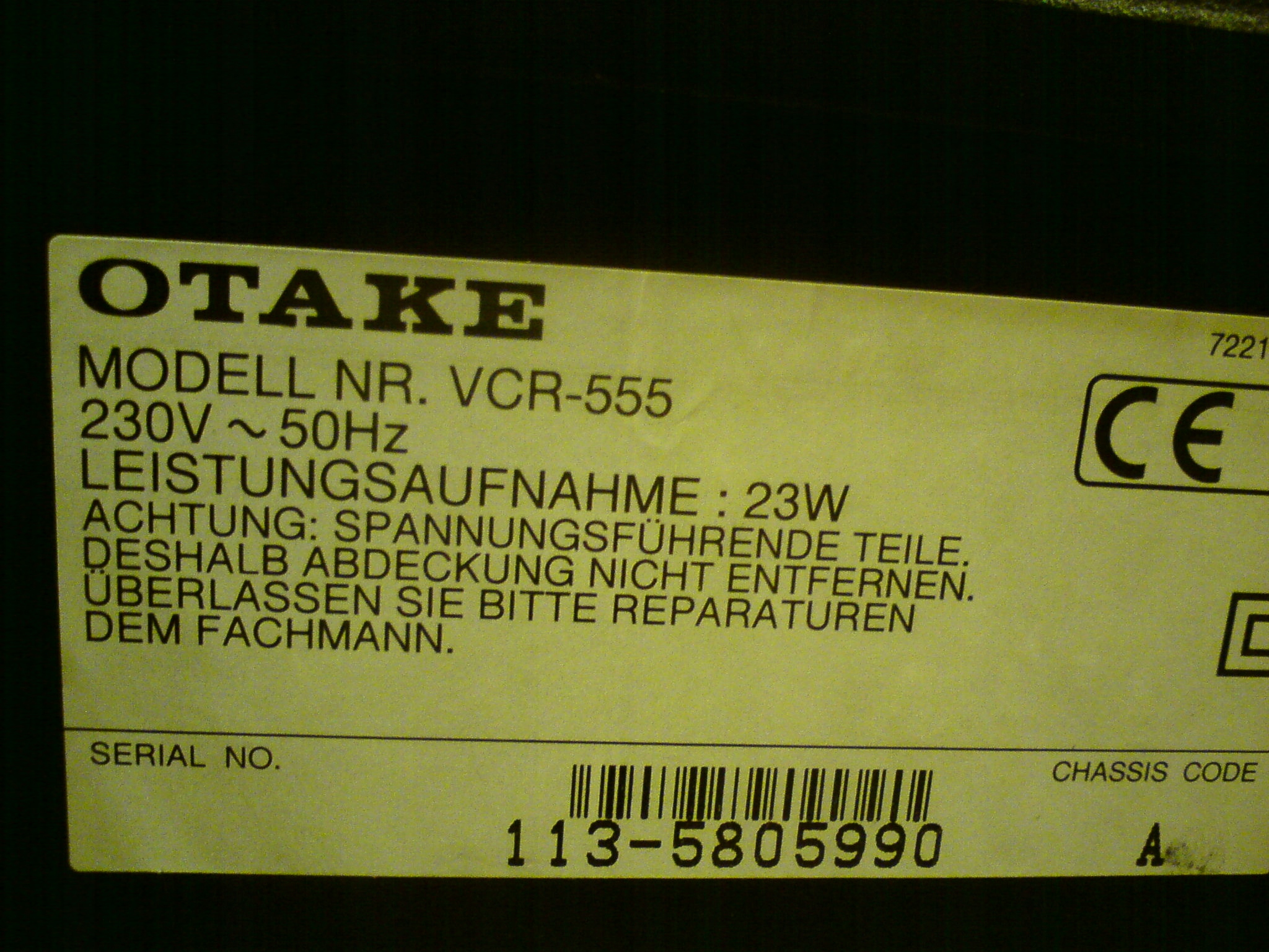 Код производителя VCR-555