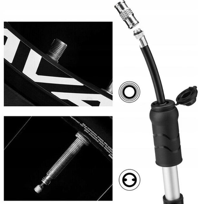 Wystarczy przełożyć końcówkę, aby dopasować pompkę do odpowiedniego zaworu – bez dodatkowych przejściówek i bez zbędnych elementów.