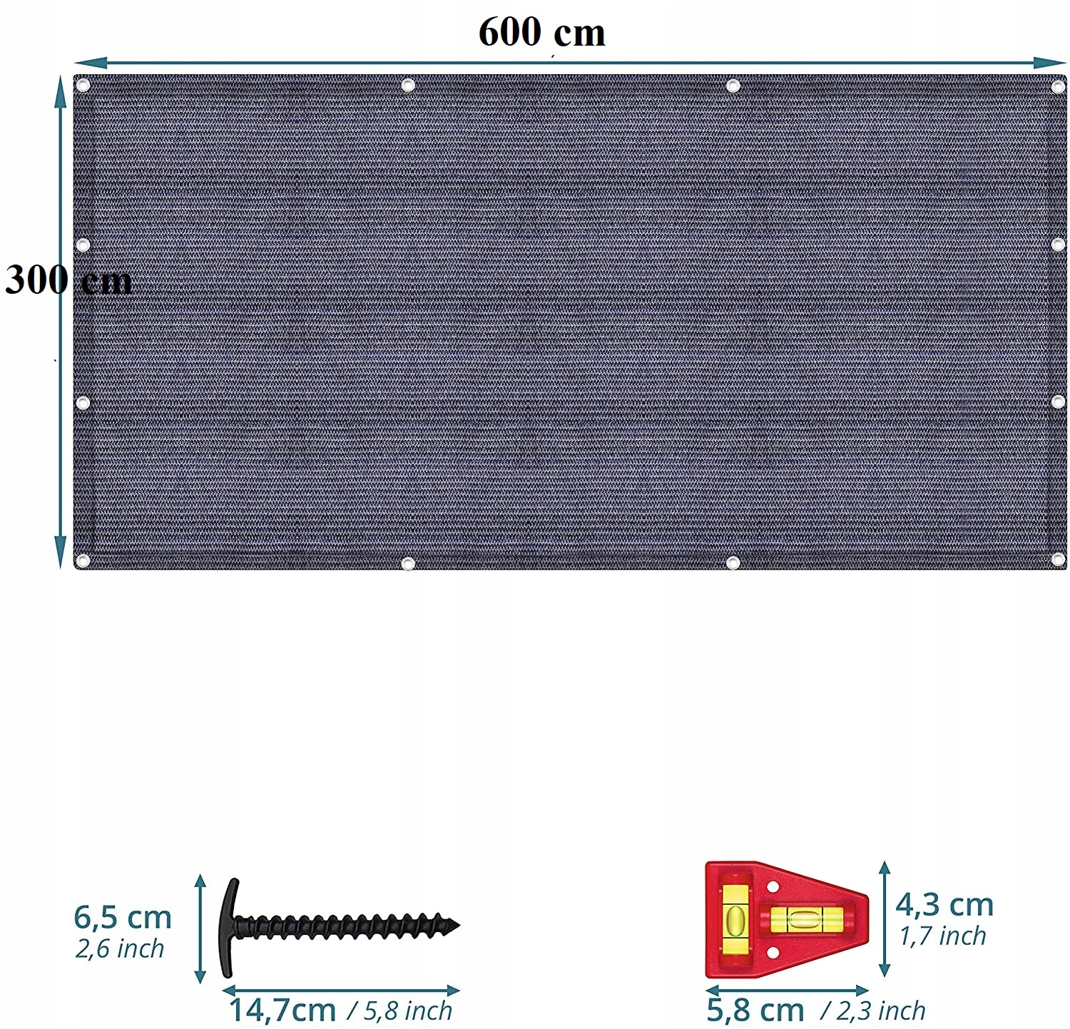 Wykonany w 100% z HDPE, dzięki czemu jest wyjątkowo wytrzymały i trwały. Obecność stabilnych oczek wykonanych ze stali nierdzewnej pomagają je stabilnie zamocować.