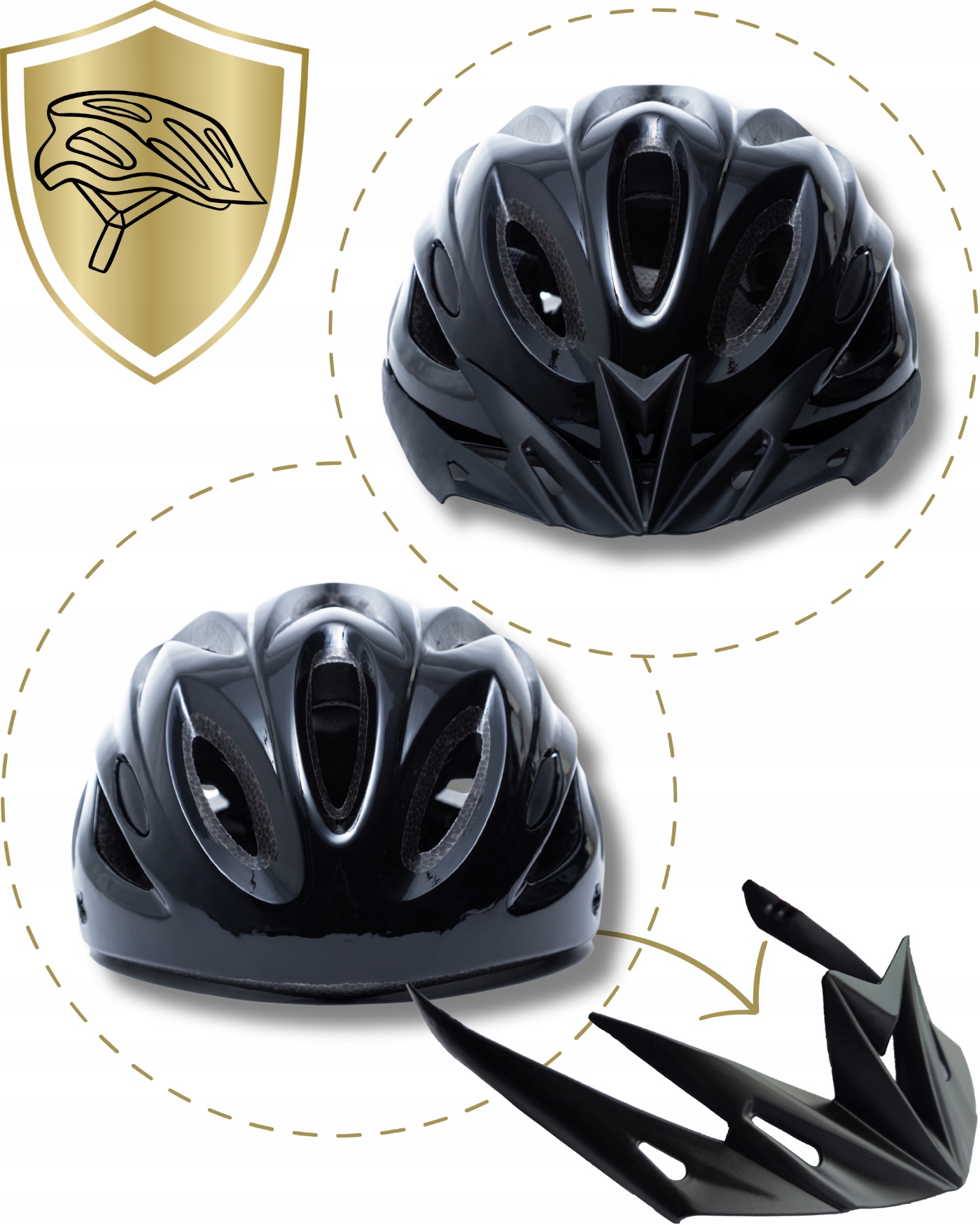 Model ten wyposażony jest w daszek, który można w każdej chwili wpiąć lub wypiąć w zależności od warunków pogodowych bądź indywidualnych preferencji. Osłona skutecznie chroni oczy przed słońcem, deszczem czy błotem, jednocześnie nie ograniczając pola widzenia.