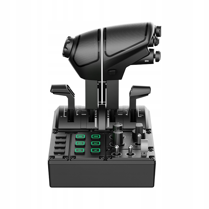 Cztery niezależne osie z wbudowanymi zapadkami umożliwiają niezwykle dokładną kontrolę hamulców aerodynamicznych, klap oraz ciągu silników. Mechaniczne ograniczniki i konfigurowalne wirtualne przyciski zapewniają realistyczne, fizyczne czucie każdego ustawienia.