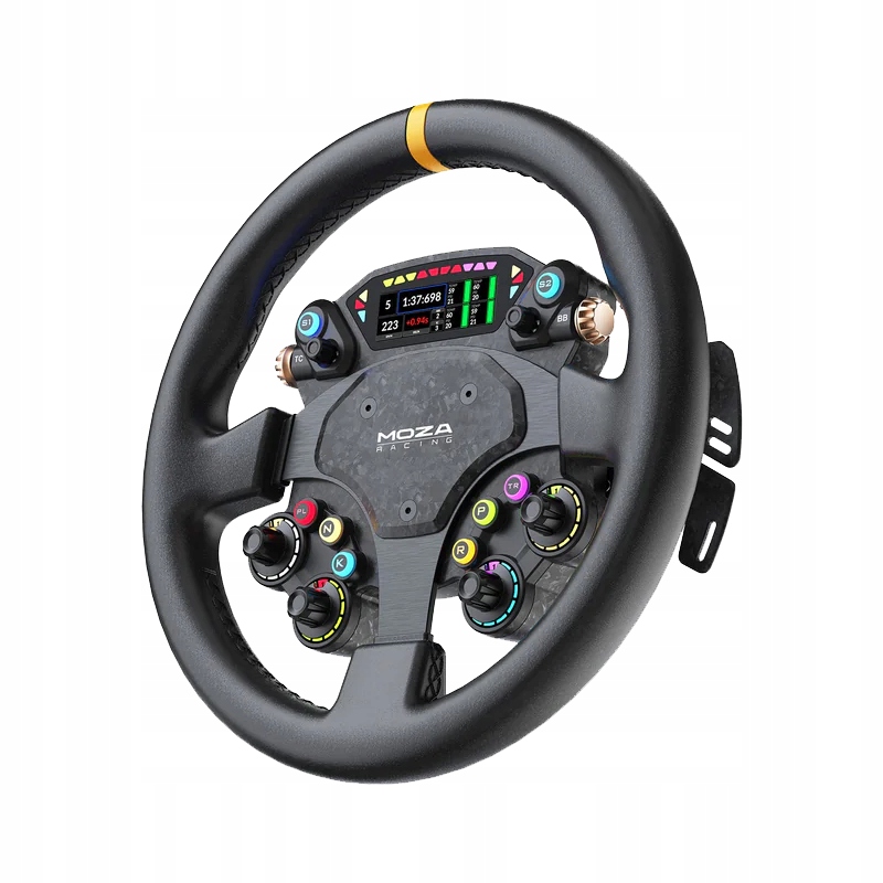 MOZA CS Pro to zaawansowana kierownica wyścigowa stworzona dla simracerów, którzy nie uznają kompromisów. Wyposażona w ręcznie szytą skórę z mikrofibry, konfigurowalny wyświetlacz HD o przekątnej 2,99 cala oraz magnetyczne łopatki z kutego karbonu, dostarcza niesamowitych wrażeń prosto z kokpitu profesjonalnego auta wyścigowego.