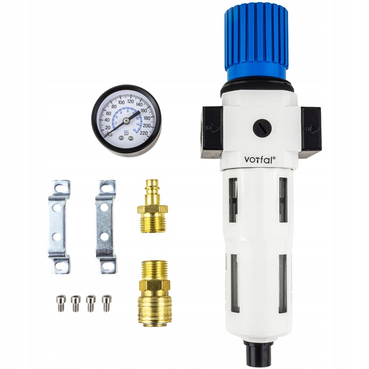 Profesjonalny filtroreduktor przeznaczony do instalacji pneumatycznych. Urządzenie łączy funkcję filtracji powietrza oraz precyzyjnej regulacji ciśnienia, zapewniając czyste i stabilne zasilanie narzędzi pneumatycznych. Niezbędny element każdej instalacji z kompresorem – chroni sprzęt przed wilgocią, olejem i zanieczyszczeniami, wydłużając jego żywotność.
