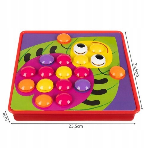 Doskonała zabawka dla wszystkich kreatywnych dzieci. Układanka rozwija wyobraźnię najmłodszych i pobudza do nieszablonowego, kreatywnego myślenia. To idealny prezent zarówno dla chłopców, jak i dla dziewczynek. Mozaika dla dzieci pozwala na samodzielne projektowanie i tworzenie przepięknych, kolorowych wzorów i całych obrazków. Kolorowa zabawka to gwarancja wielogodzinnej zabawy zarówno samodzielnej, jak i z rodzicem lub rówieśnikami.