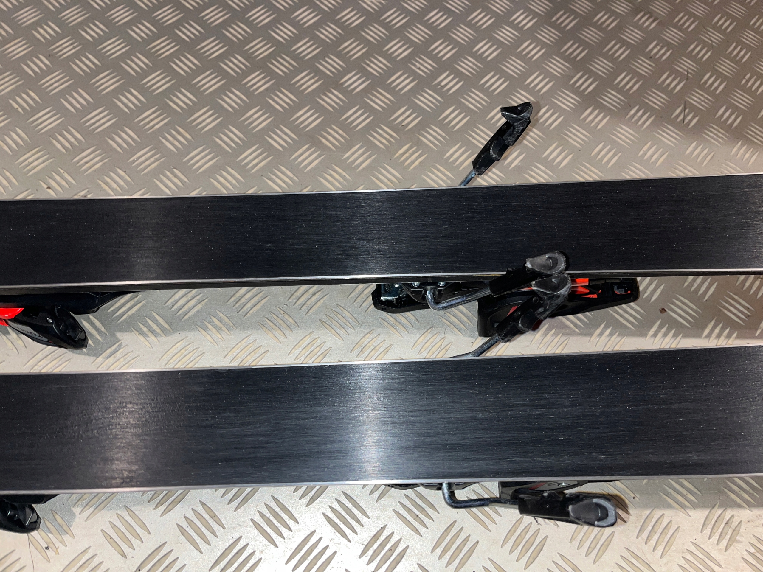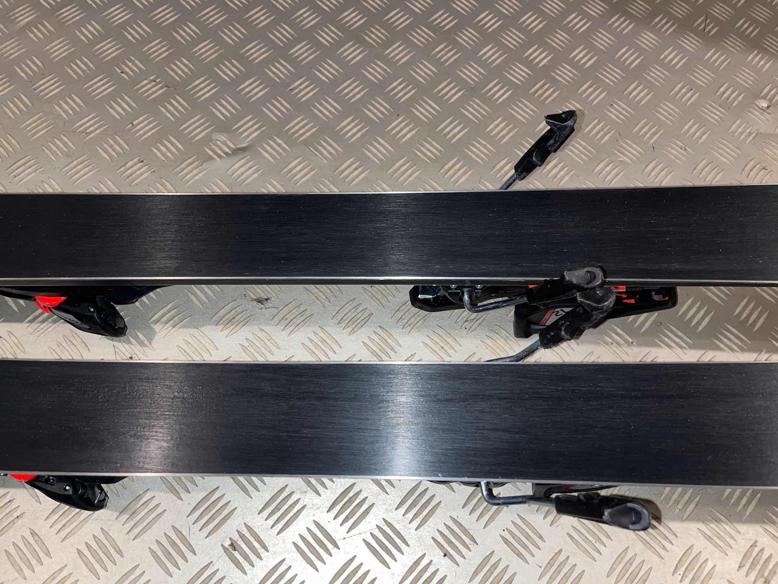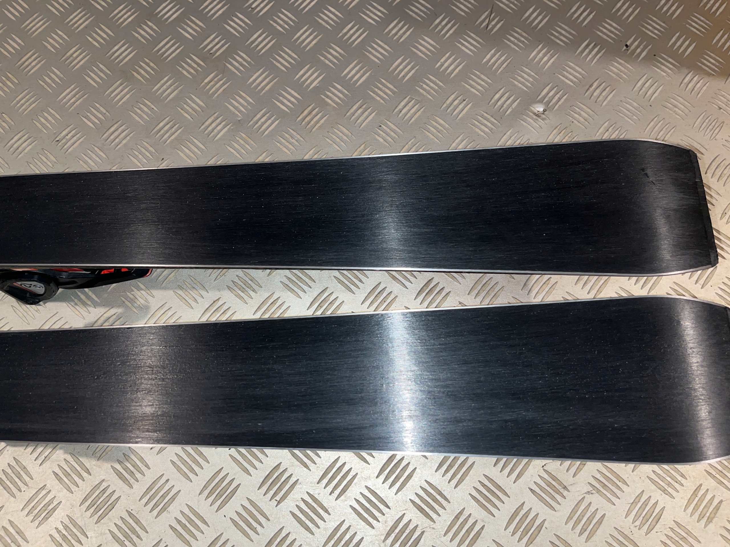 Krawędzie są świeżo po ostrzeniu w bardzo dobrym stanie. Ślizgi gładkie, bez rys w bardzo dobrym stanie, nawoskowane. Kosmetyczne ślady użytkowania, zadry na laminacie i wiązaniach-foto. Gotowe do użytkowania!