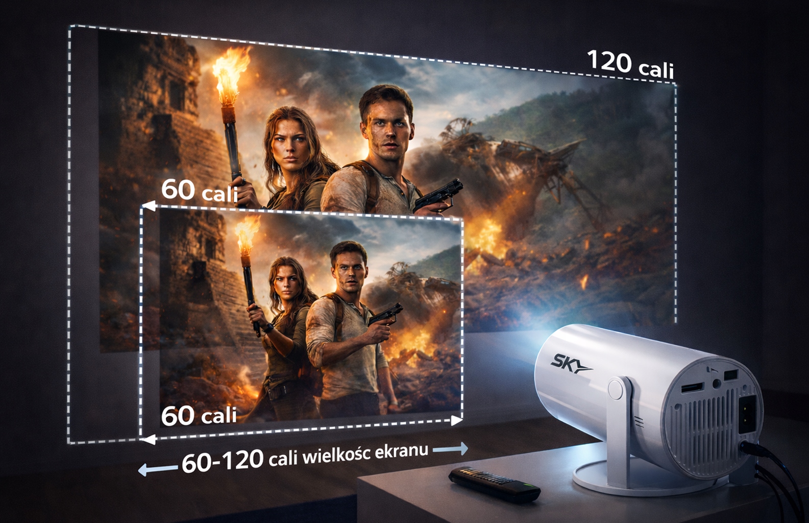 ✅Regulowany kąt projekcji 180° - projekcja tam, gdzie chcesz