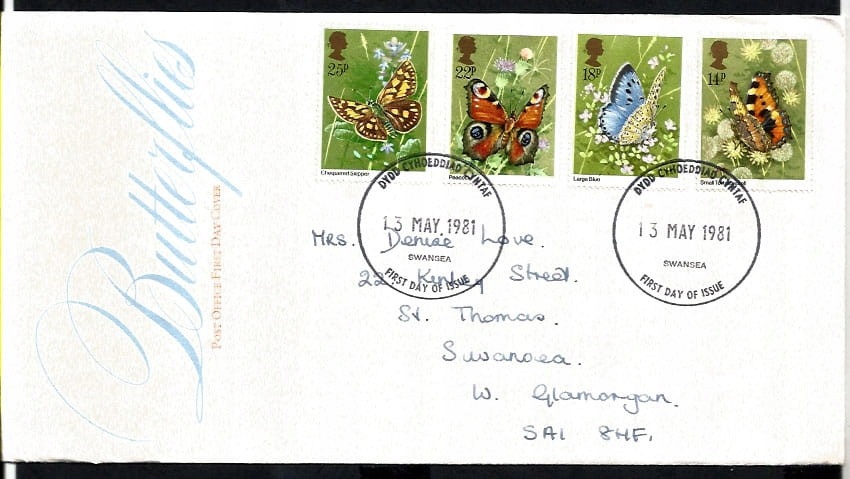 Wielka Brytania 1982, Motyle. FDC
