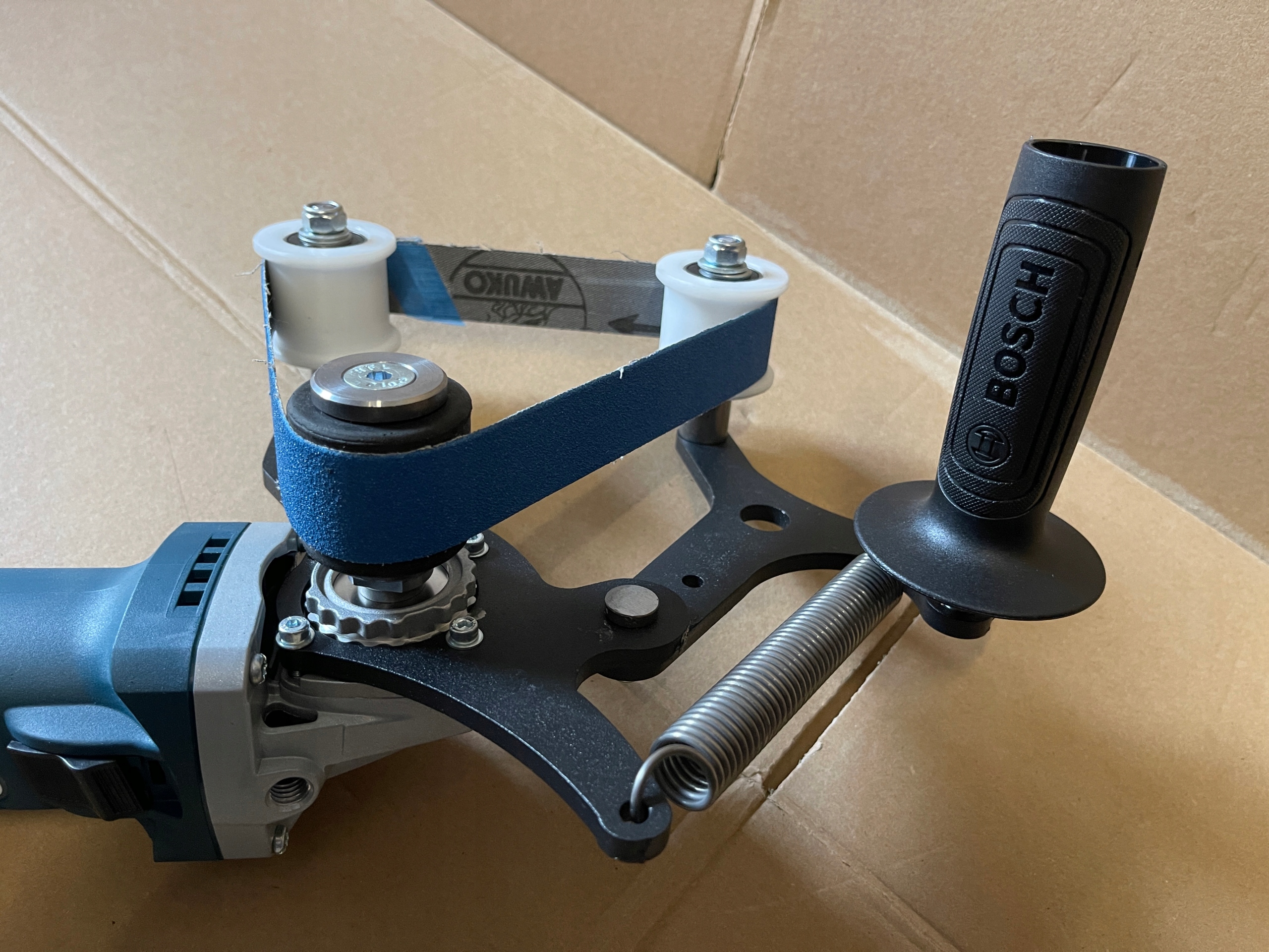 - kompletną przystawkę, gotową do pracy (bez szlifierki) – dokładnie taką jak na zdjęciach,