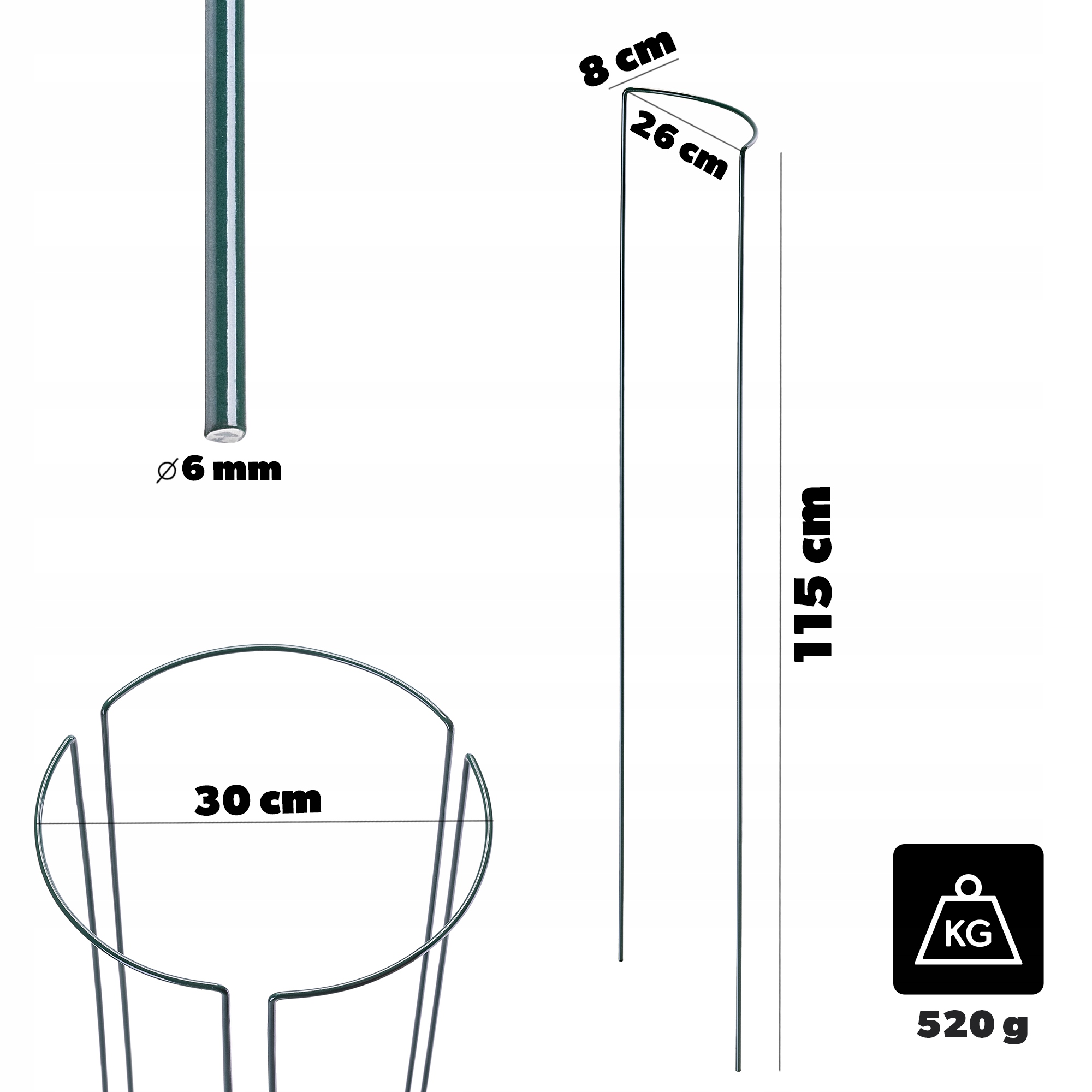 Każda podpora ma kształt 1/3 okręgu, a zestaw 3 sztuk pozwala stworzyć pełne koło wokół rośliny, zapewniając stabilne i równomierne podparcie z każdej strony.