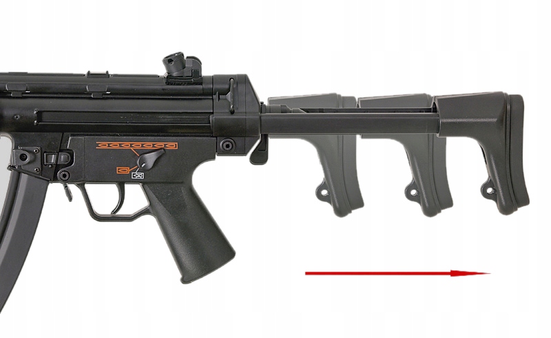 Podobnie jak w pierwowzorze, replika została wyposażona w składaną kolbę z realistycznym siłownikiem oraz selektor ognia w stylu „navy”. Przyrządy celownicze — muszka oraz przeziernik — wykonano z metalu, co pozytywnie wpływa na trwałość i realizm konstrukcji.