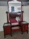 Przedmiotem sprzedaży jest stara toaletka. Mebel w dobrym stanie posiadający normalne ślady użytkowania jednakże gotowy do dalszej eksploatacji. Tafla lustra fazowana z przebarwieniami, mebel w całości oryginalny. Polecam i zapraszam do zakupu. Pozostałe informacje poniżej.