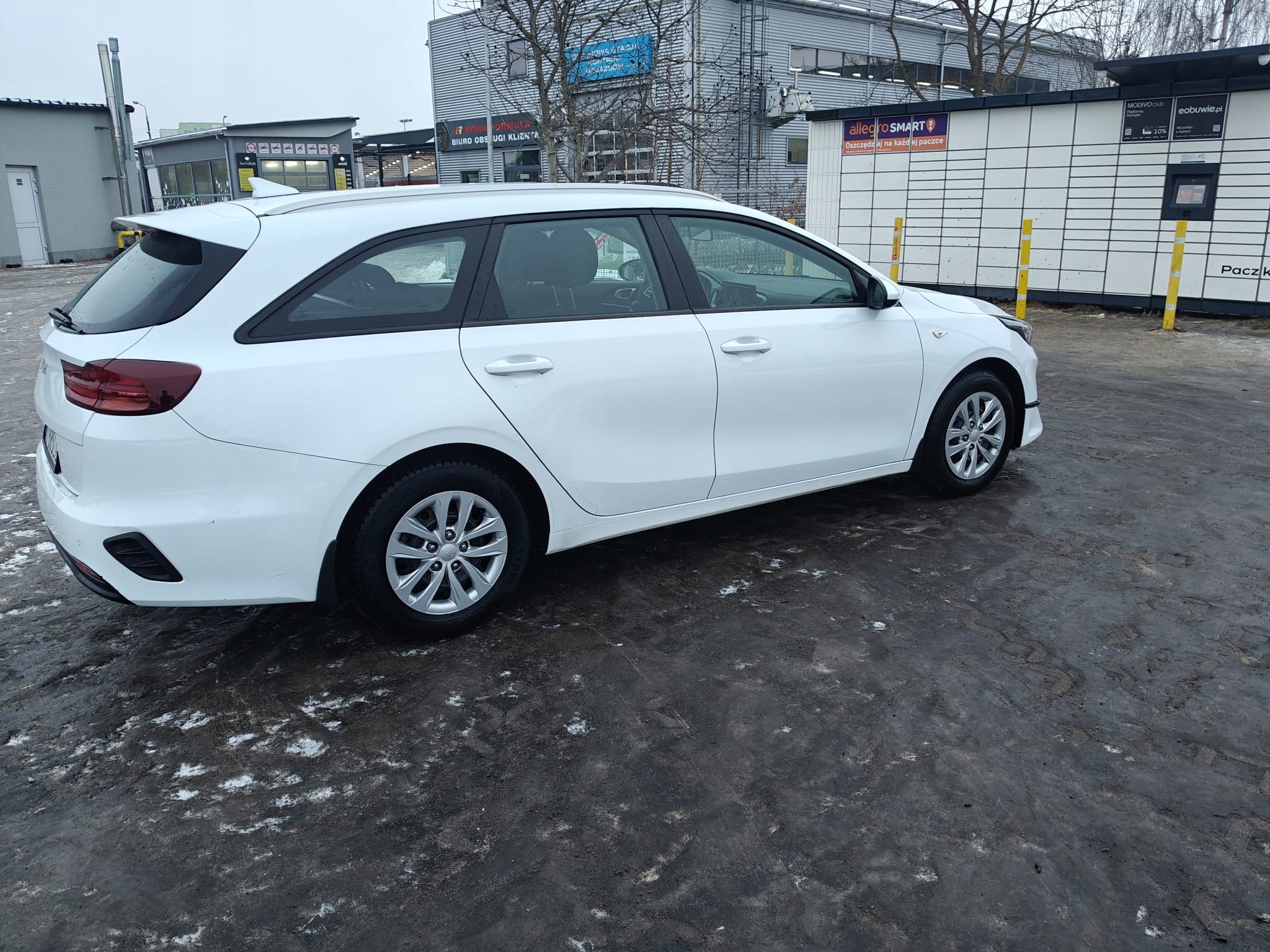 Jest to białe kombi z pięcioma drzwiami i pięcioma miejscami siedzącymi.