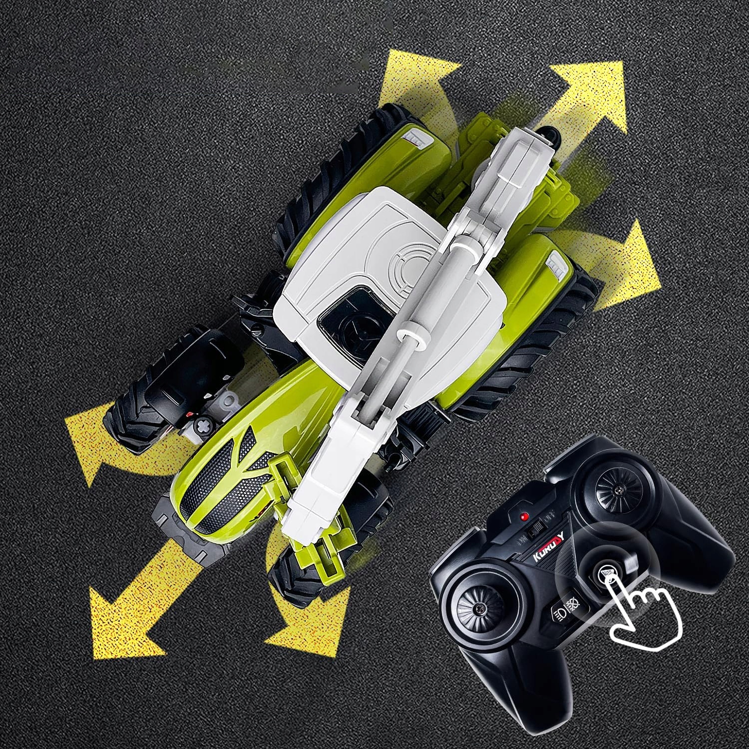 Ten traktor, odpowiedni dla dzieci w wieku 3, 4 i 5 lat, jest wyposażony w bezprzewodowy pilot zdalnego sterowania 2,4 GHz, zaprojektowany specjalnie dla dzieci. Jest łatwy w obsłudze i posiada zabezpieczenie przeciwzakłóceniowe. Traktorem można łatwo sterować nawet przy użyciu wielu zabawek 2,4 GHz. Nadwozie wykonane jest z wysokiej jakości tworzywa ABS, odpornego na upadki i uderzenia, a opony z wysokiej jakości gumy, odpowiedniej do większości nawierzchni.
