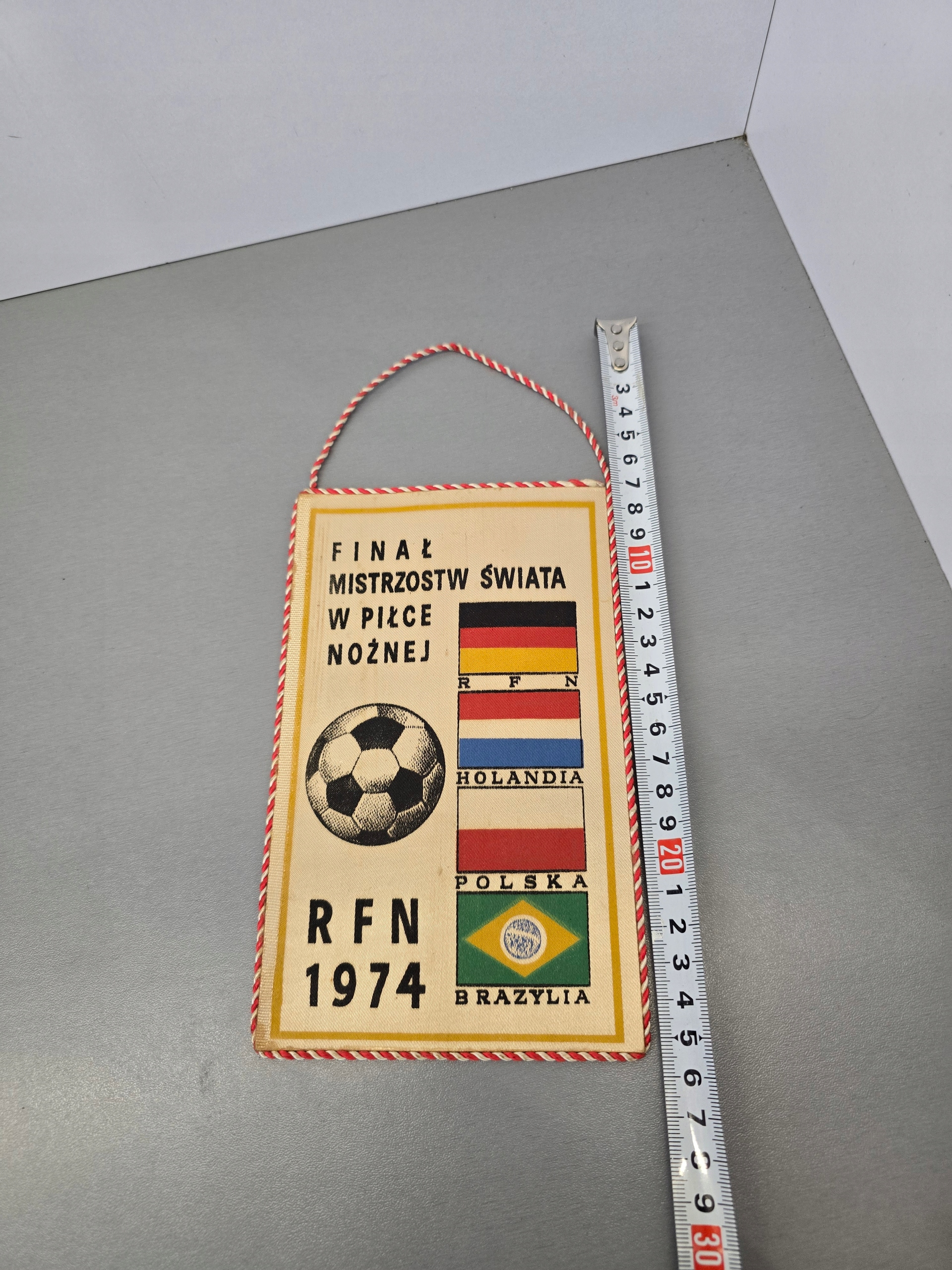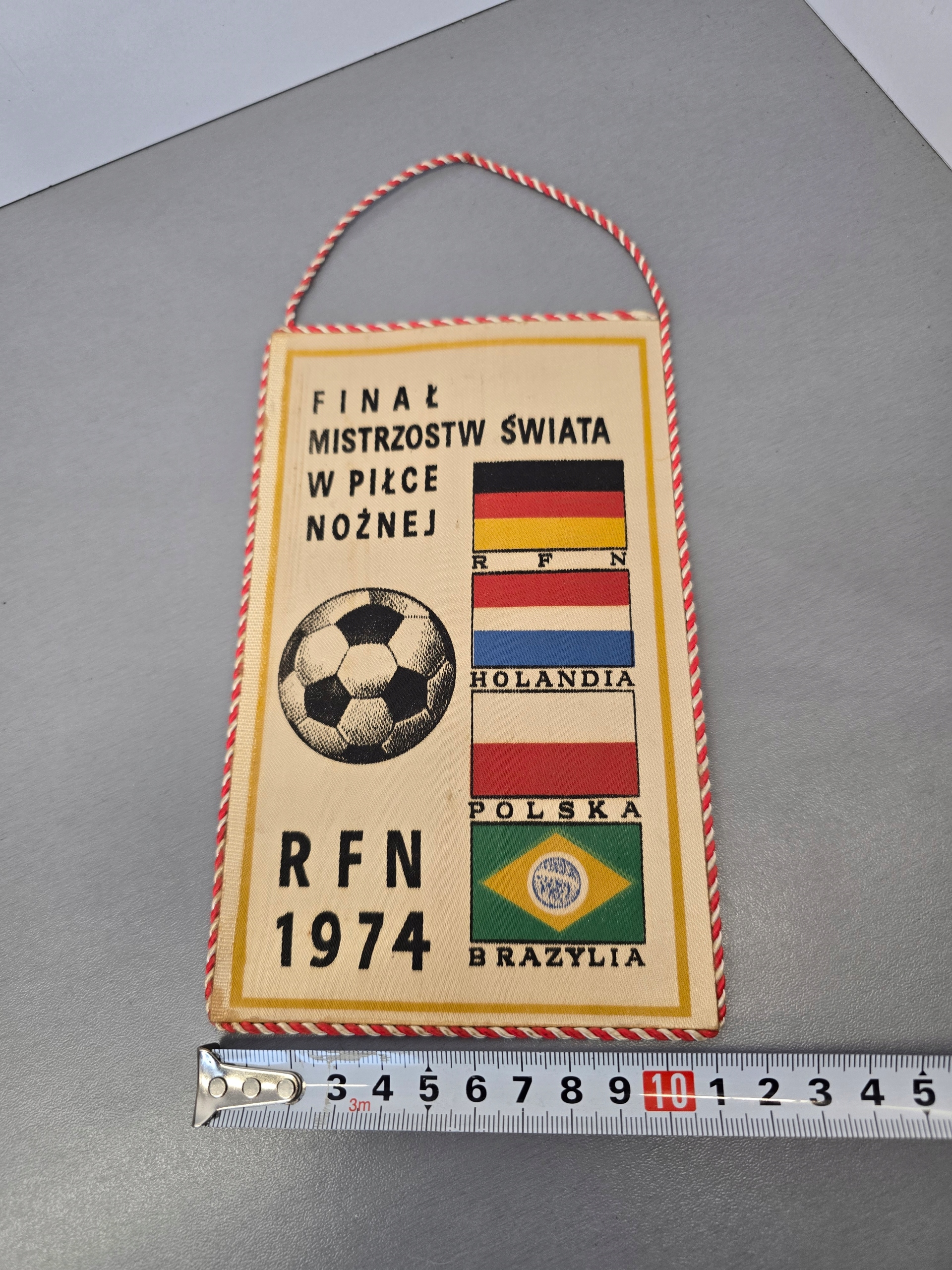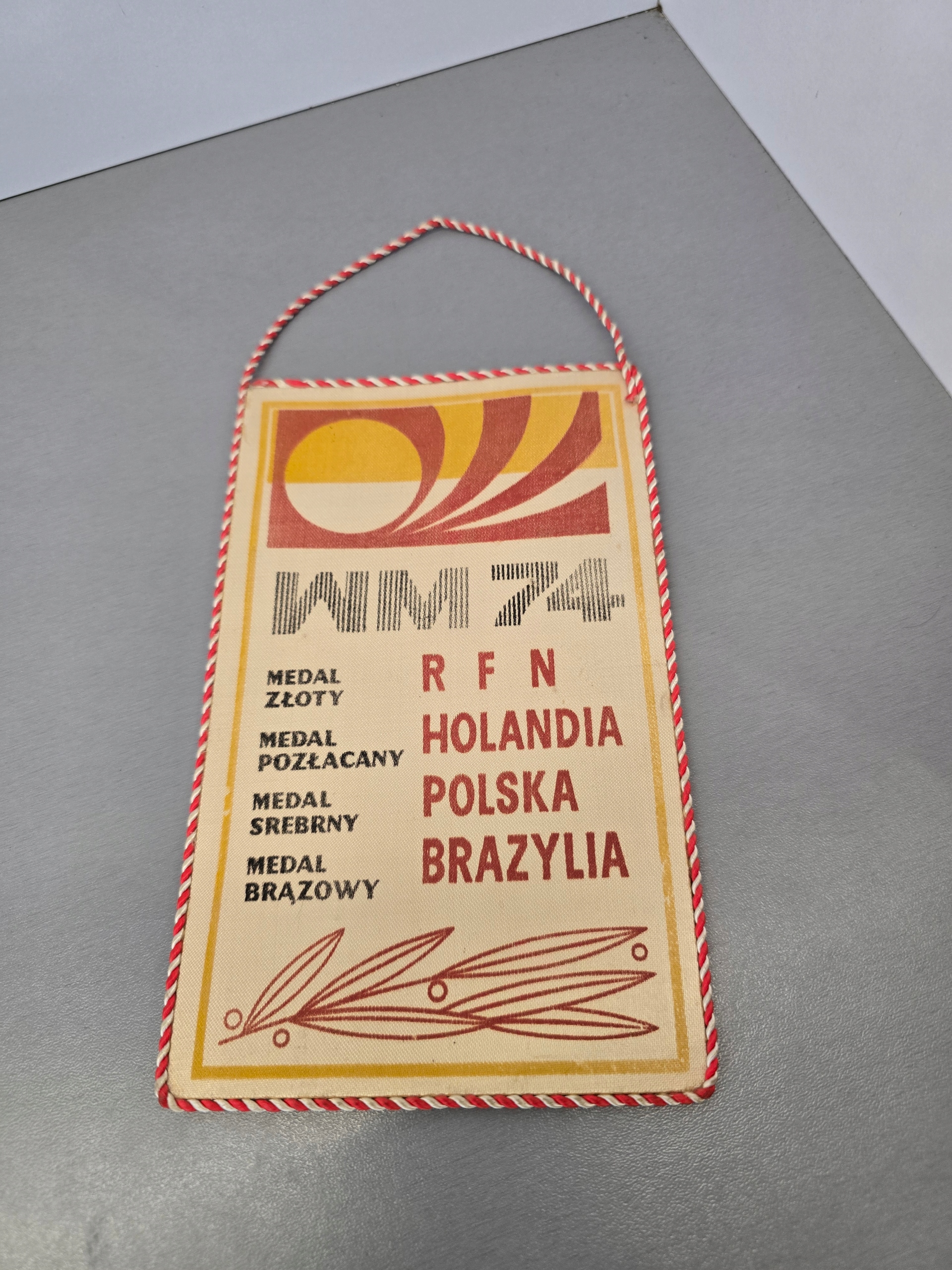 Witam sprzedam widoczny na zdjęciach Proporczyk z okresu PRL-U związany z Finałem mistrzostw świata w piłce nożnej w RFN gdzie Polska Reprezentacja zdobyła Srebrny medal jak na proporczyk co ma przeszło 50 lat stan oceniam na bardzo dobry zainteresowanych zakupem zapraszam szybka I dobrze zabezpieczona przesyłka paczkomatem zapraszam również na inne moje ogłoszenia.