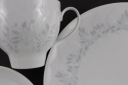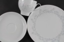 Biała, ładna porcelana. Charakterystyczne przetłoczenia zdobione szarymi gałązkami