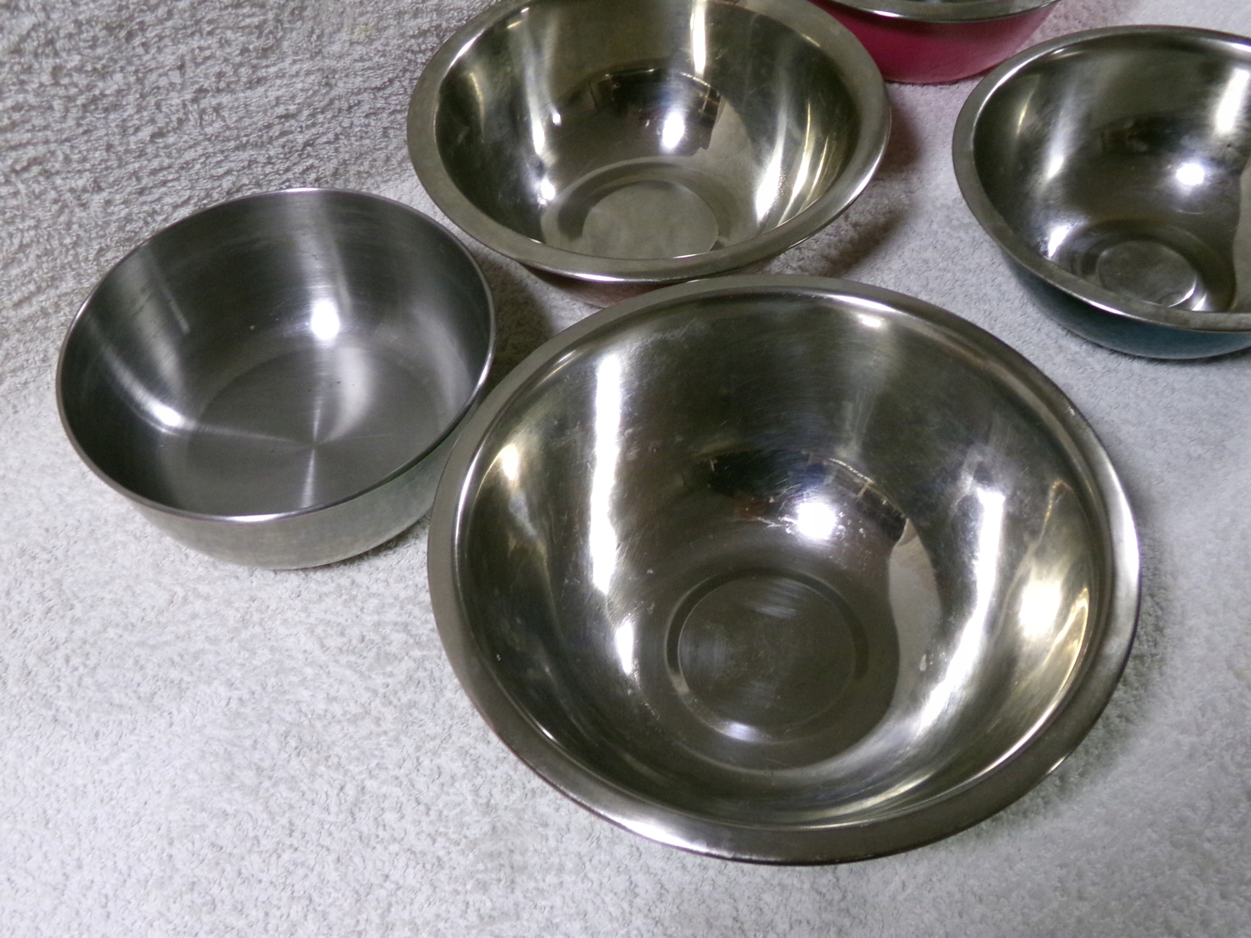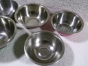 5 misek ze stali nierdzewnej o średnicy 16,5 do 22 cm,wysokości 6,5 do 8 cm,wadze 0,57 kg.Stan zachowany bardzo dobry,bez uszkodzeń,delikatne ślady użytkowania.