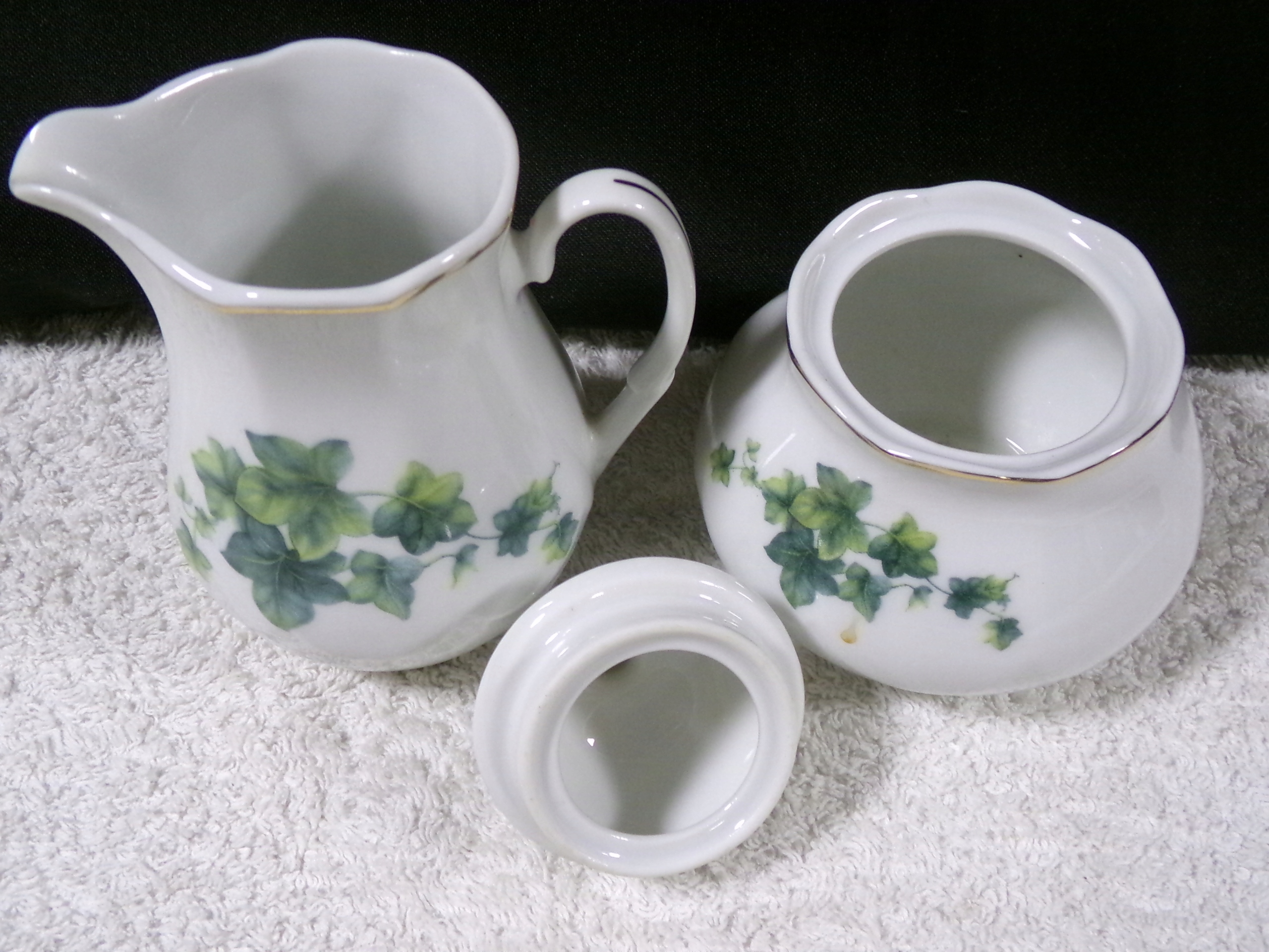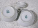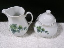 Cukiernica i mlecznik z porcelany o średnicy środka 7 i 6 cm,wysokości 10,5 i 10 cm,wadze 0,30 kg.Stan zachowany bardzo dobry,bez uszkodzeń.