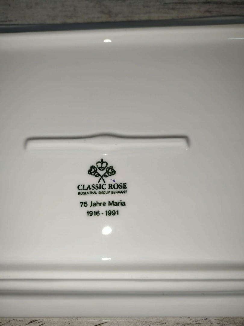 Przedmiotem sprzedaży jest półmisek Rosenthal Biała Maria, stan bardzo dobry , sygnatura Classic Rose stosowana po 1975 r, wymiary : 27 / 16,5 cm. Polecamy !