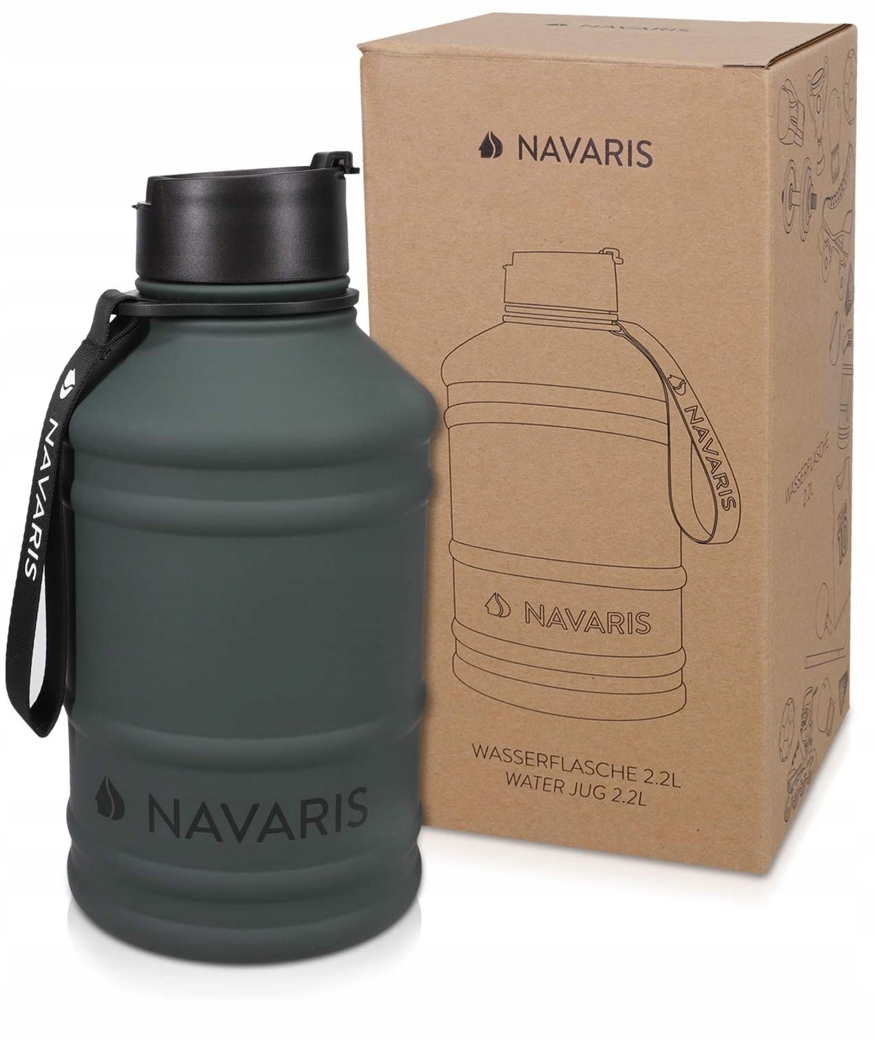 Dzięki objętości 2.2 litra możesz mieć pewność, że zawsze masz wystarczającą ilość wody, aby pozostać nawodnionym w pracy, na kempingu, w sporcie, podczas wędrówek lub na siłowni.