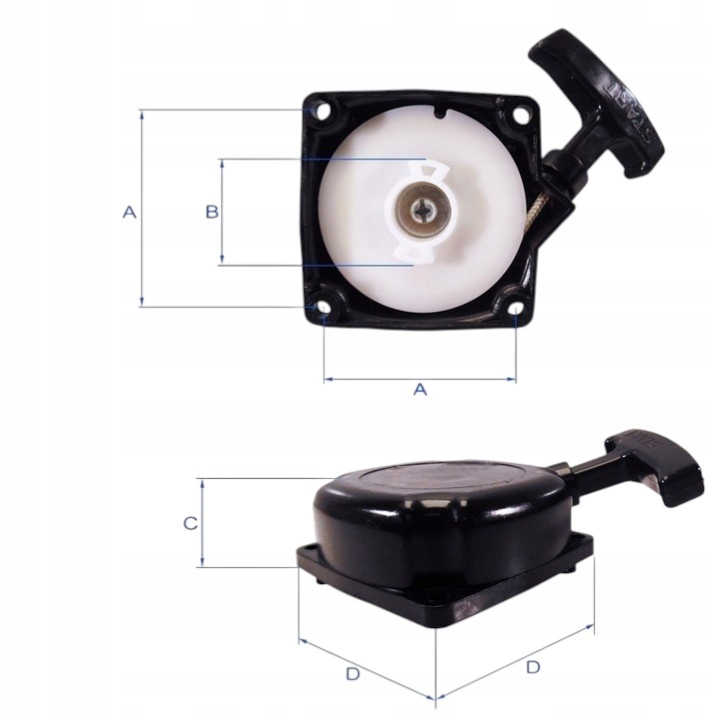1. Czy ten szarpak (T2) będzie pasować do mojej podkaszarki? Szarpak typu T2 to jedno z najpopularniejszych rozwiązań na rynku, stosowane w setkach modeli "chińskich" i marketowych kos spalinowych. Najpewniejszym sposobem na uniknięcie pomyłki jest odkręcenie obecnego rozrusznika i zmierzenie rozstawu otworów na śruby (od środka do środka otworu). Wynik porównaj ze schematem wymiarów, który umieściliśmy w naszej galerii zdjęć obok produktu.