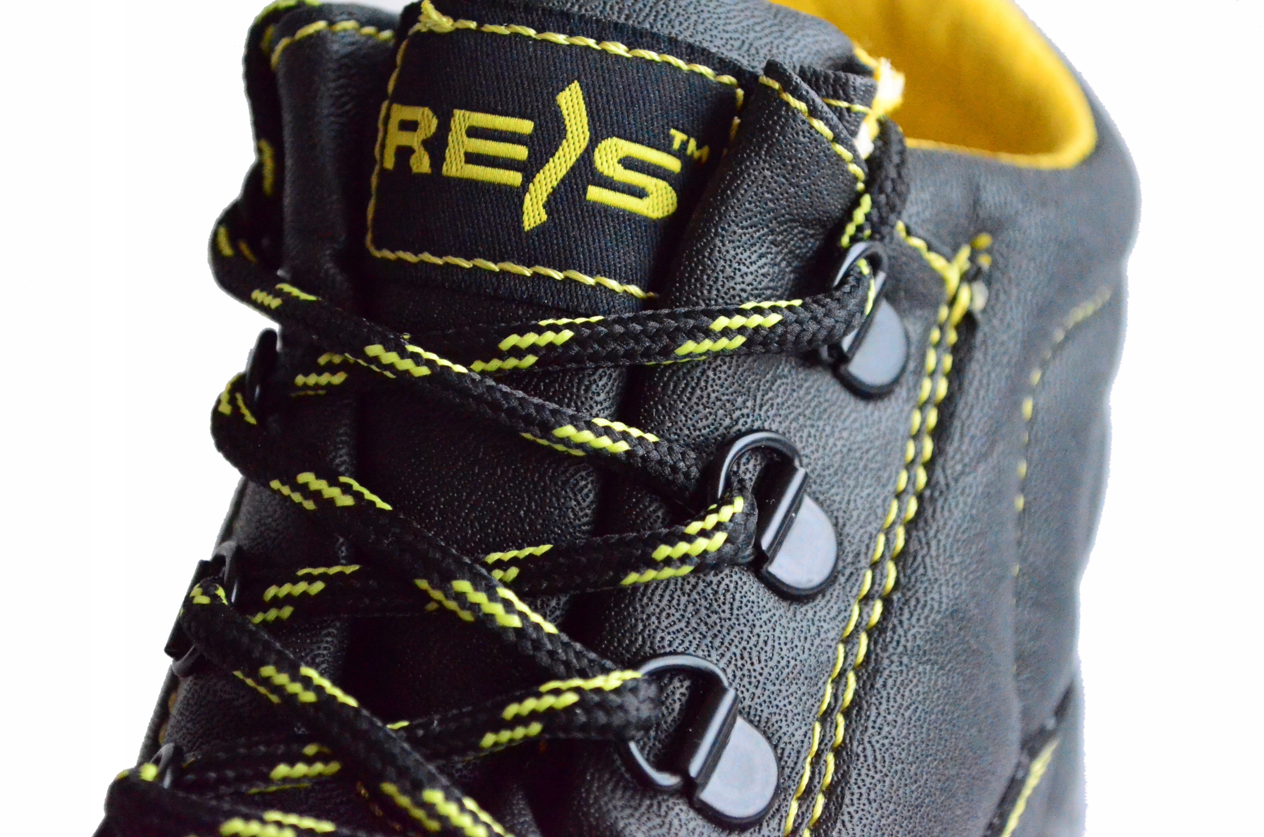 Buty robocze YES typu trzewik, sięgające za kostkę, wykonane ze skóry bydlęcej, kategoria SB E FO SRC, rozmiar 36-50. Obuwie spełnia wymagania norm EN20345, EN20344.