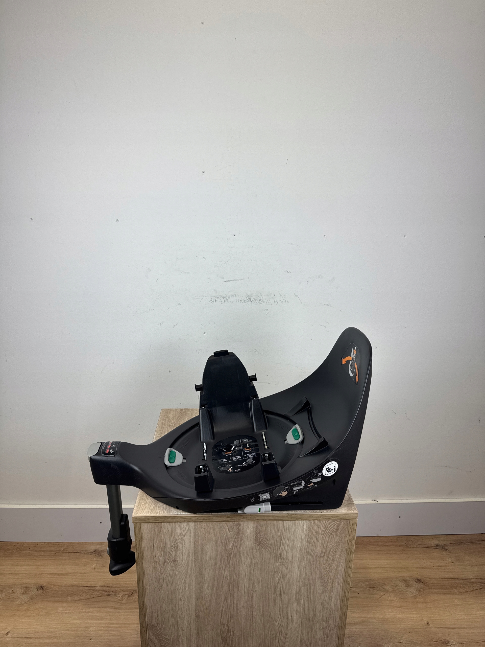 Baza montowana jest w samochodzie za pomocą systemu Isofix i nogi stabilizującej. Oferuje łatwy w obsłudze system obrotu: