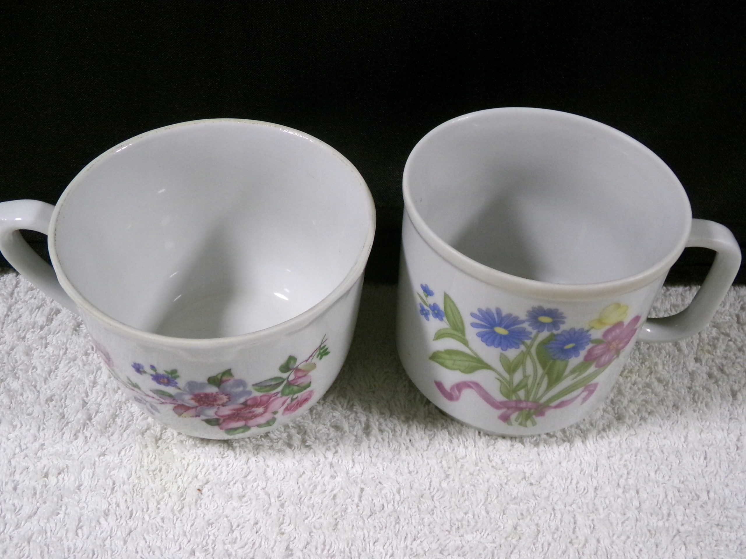 Zestaw kubków porcelanowych o średnicy środka 8 do 9,5 cm,wysokości 7,5 do 8,5 cm,wadze 0,47 kg.Stan zachowany bardzo dobry,bez uszkodzeń.