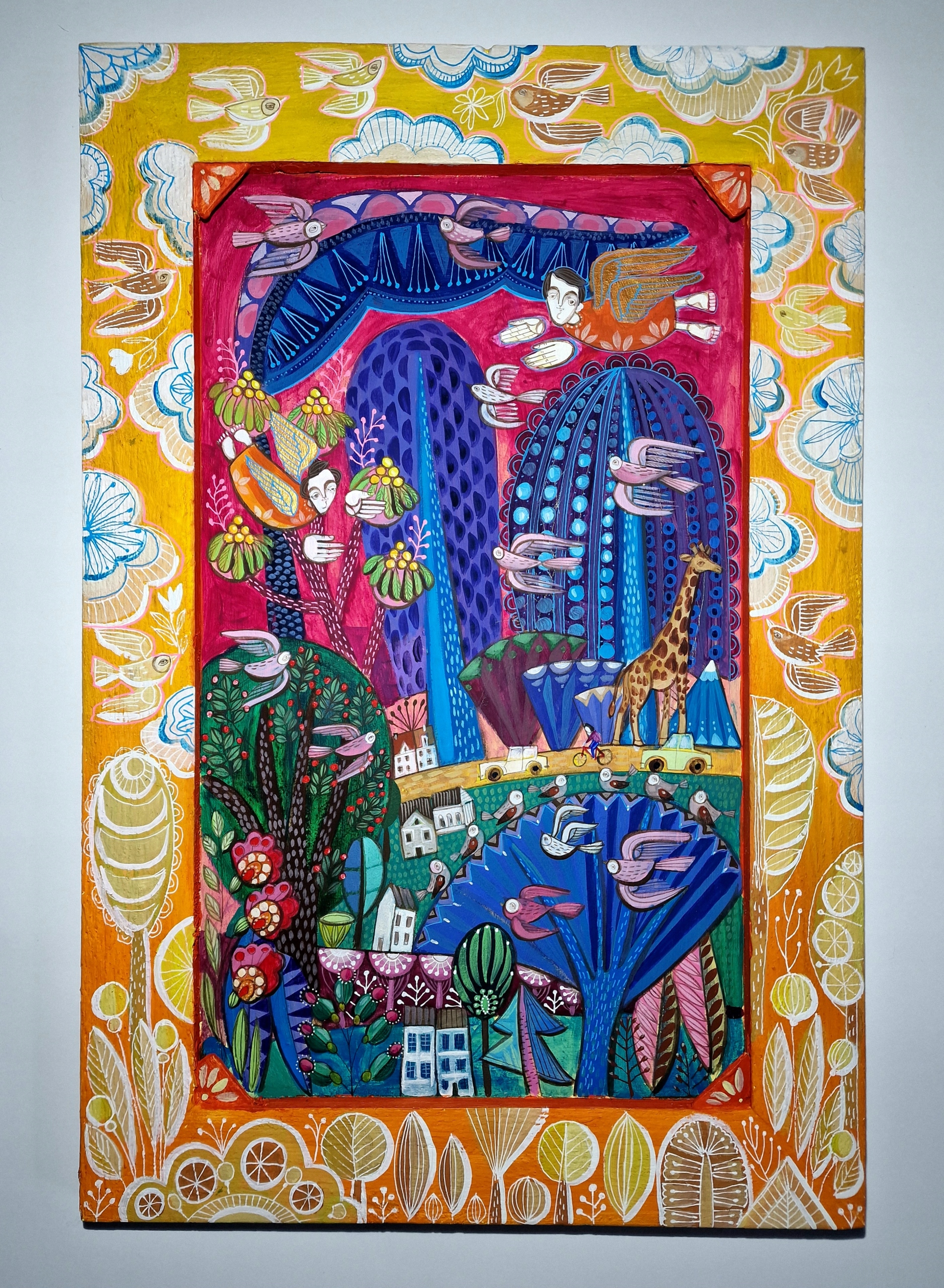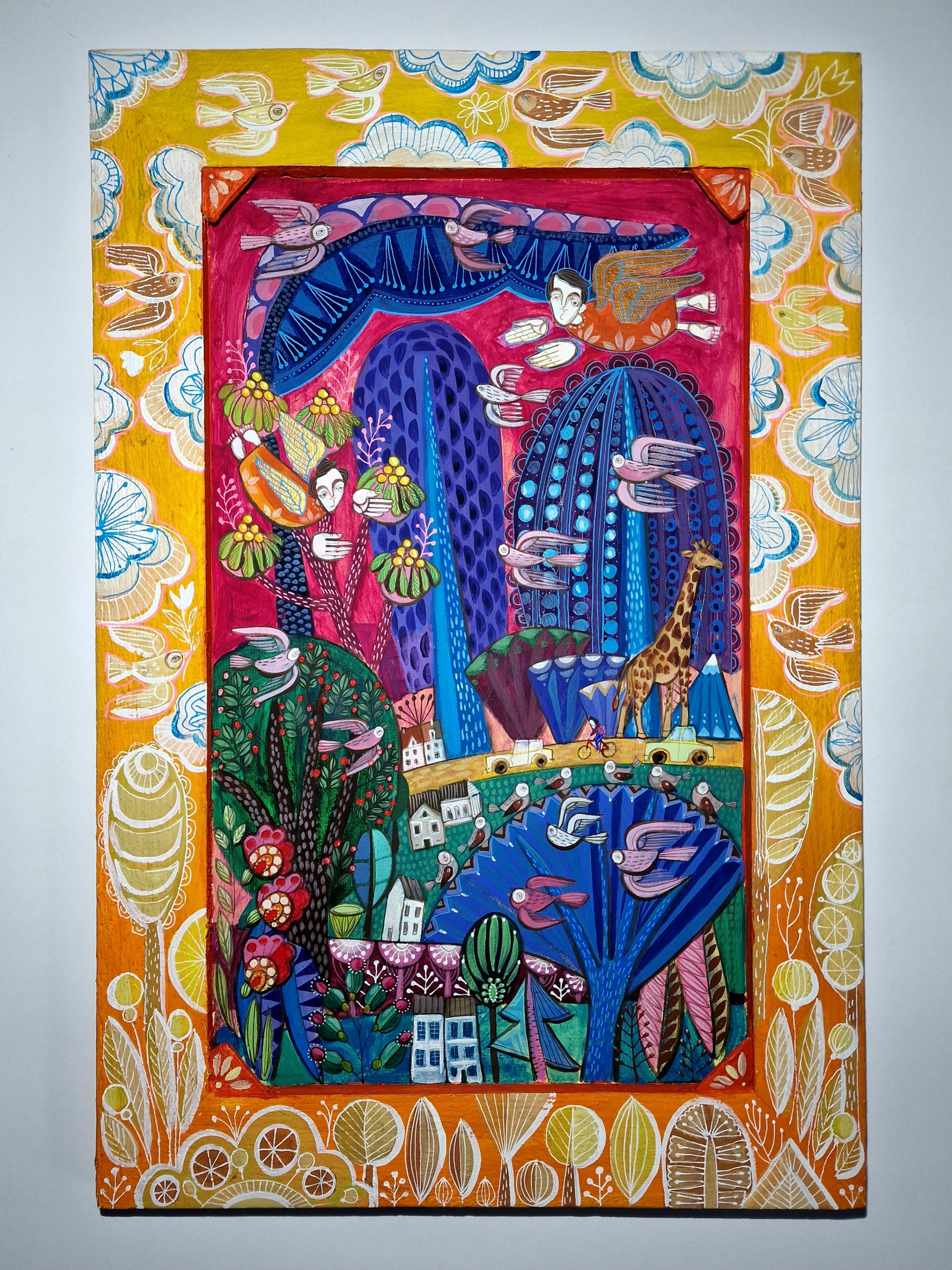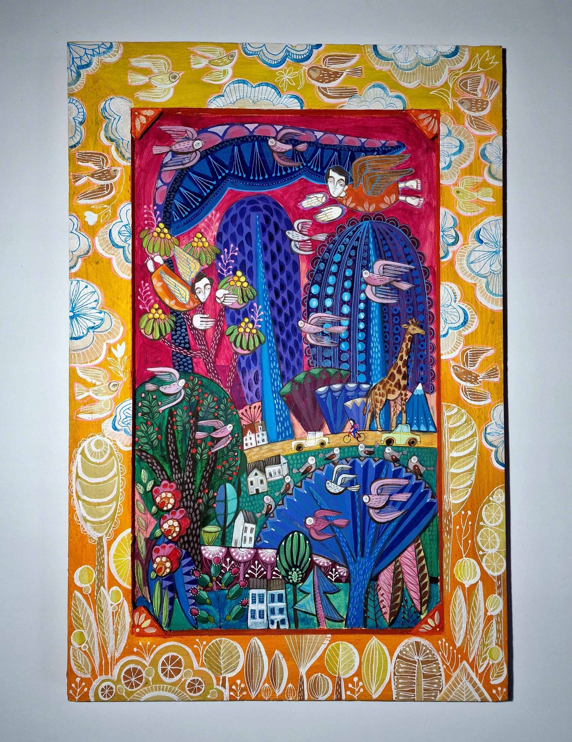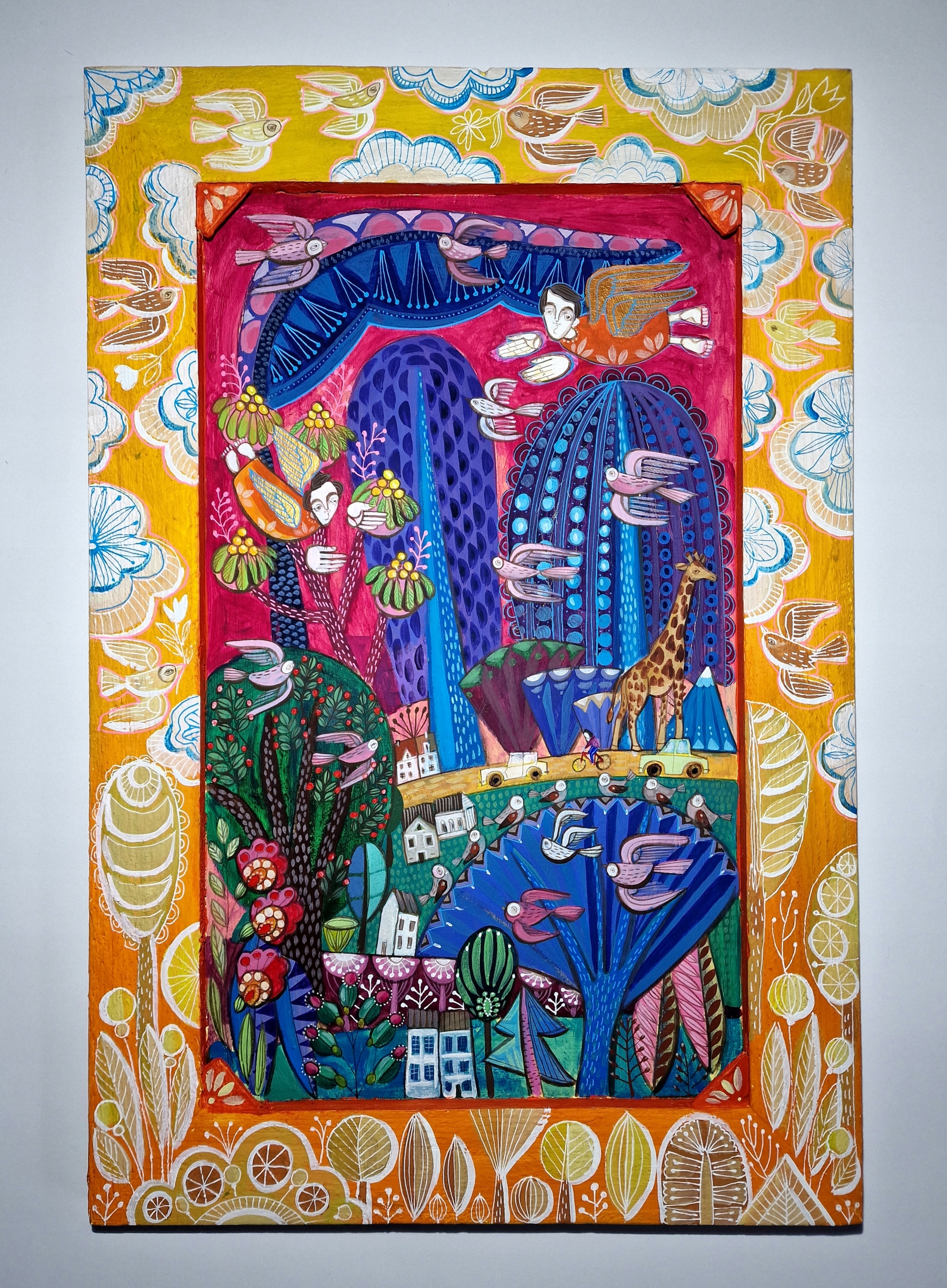 Monika Kwiecińska (1982), graduate of the Academy of Fine Arts in Warsaw, has years of experience painting religious-themed work.She is also at ease with synthesized easel painting.However, her most prominent passion and joy is creating work inspired by Polish folk art, full of warmth, simplicity, a wealth of color and symbolism.What distinguishes her work from others is the creation of each piece from the very basics: carefully selected canvases and frames make this artists‘ pieces unique and exceptional.