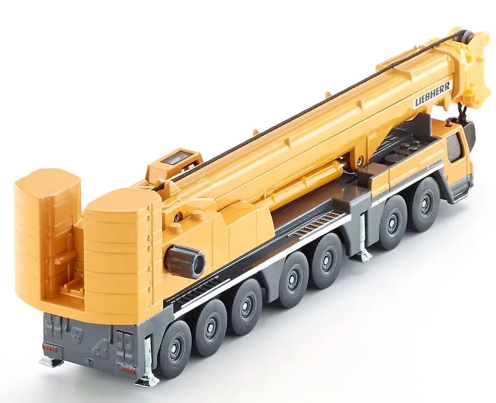 Przedstawiamy nowy dźwig samobieżny marki Liebherr. Model prawie całkowicie wykonany z odlewu metalu, przemieszcza się na 7-osiowym podwoziu z gumowymi oponami. Urządzenie obraca się o 1800. Wysięgnik ma regulowaną wysokość. Możliwość przedłużenia czterech metalowych wsporników.