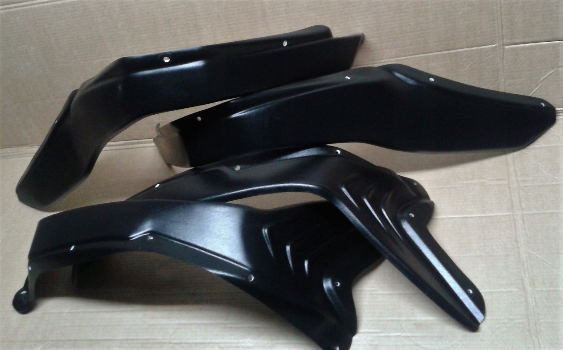 Poszerzenia błotników Cam-Am Renegate 1000 / 800/ 500 na ramę G1 i G2. Zestaw zawiera cztery elementy, wykonane elastycznego laminatu poliestrowo - szklanego, pokrytego czarna powłoką akrylową( żelkot) . Szerokość elementów 7,5 cm, Nawiercone otwory montażowe. Spód zabezpieczony czarnym natryskiem. Łatwy montaż. W razie uszkodzenia można dokupić jedno poszerzenie. Proszę o przemyślane zakupy ponieważ zwrotów nie przyjmuję.