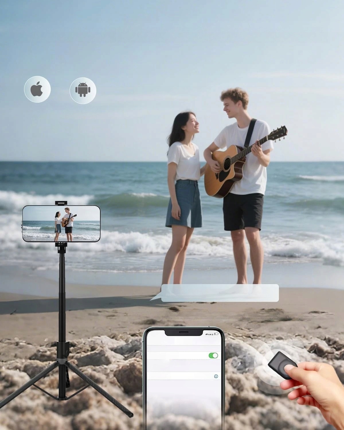 Wbudowany bezprzewodowy pilot Bluetooth umożliwia wykonywanie zdjęć i uruchamianie nagrywania bez dotykania telefonu. Uchwyt obracany o 360° pozwala szybko zmienić orientację z pionowej na poziomą. Uniwersalne mocowanie 1/4" daje możliwość podłączenia także kamer sportowych czy lekkich aparatów.