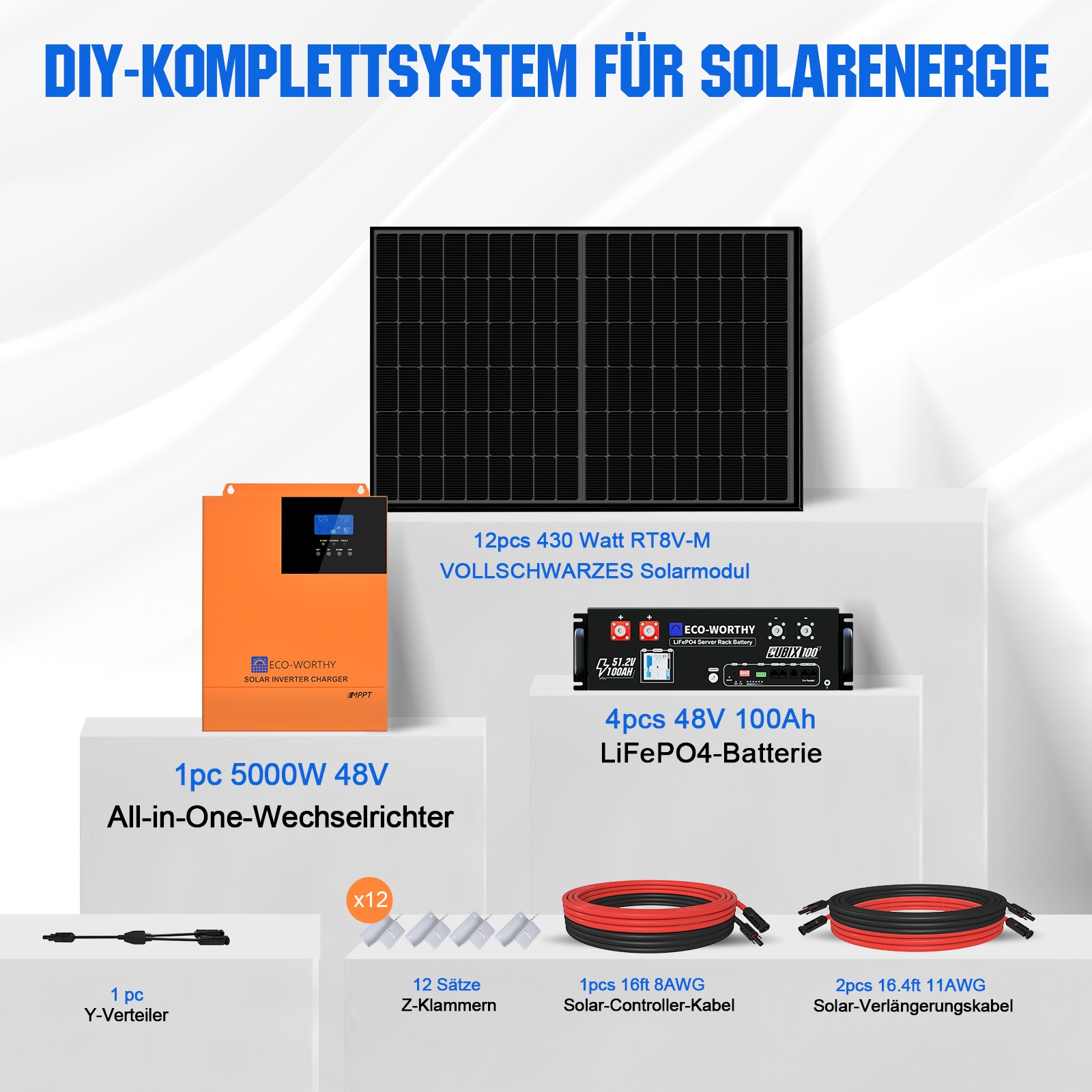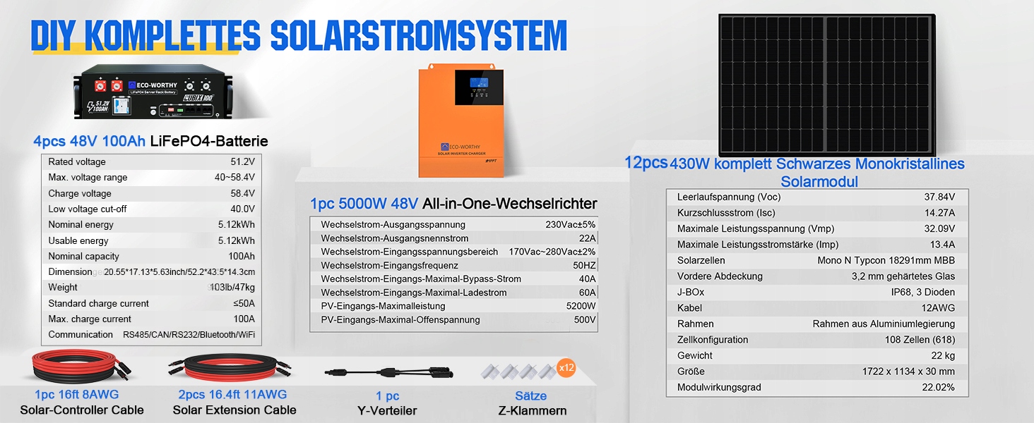 🔧 48 V 5160 W Kompletny zestaw DIY Układu Słonecznego(5160 W panele słoneczne + 20.48 KWh akumulator magazyn energii):